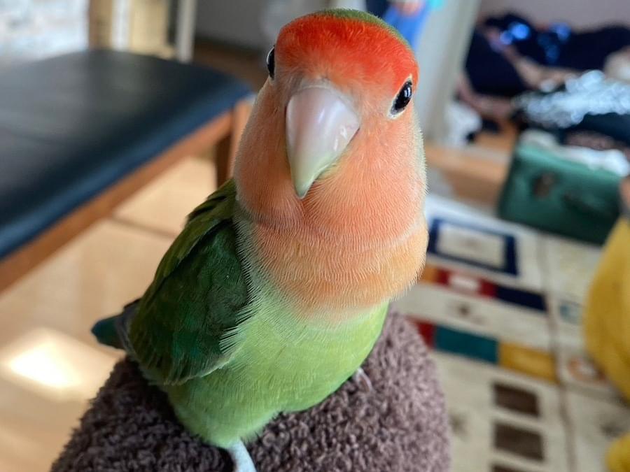 ②人懐っこく肩や頭にとまります。チャチャと呼ぶとピーピーと返事をすることが多いです。