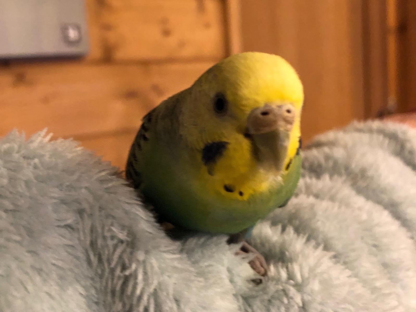 頭が黄色 胴体グリーン系 頬紺色のセキセイインコをさいたま市で保護しました。