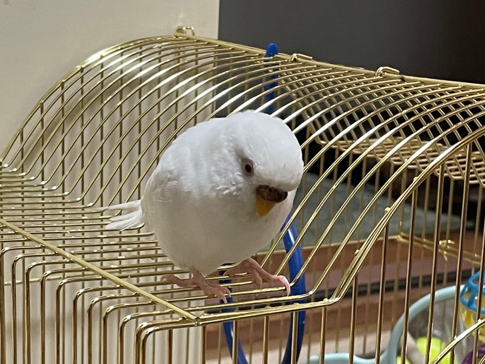 2023/2/16早朝にベランダから逃げてしまいました。アルビノセキセイインコで真っ白で赤い目をしています。鼻は焦茶色。