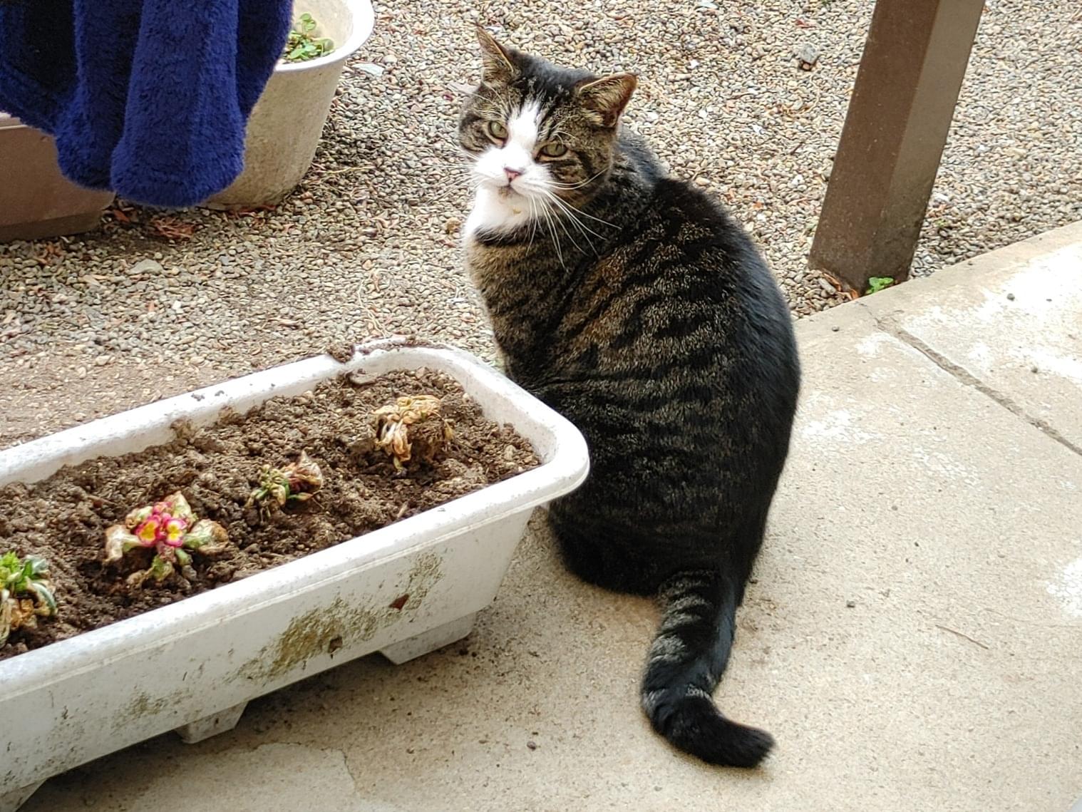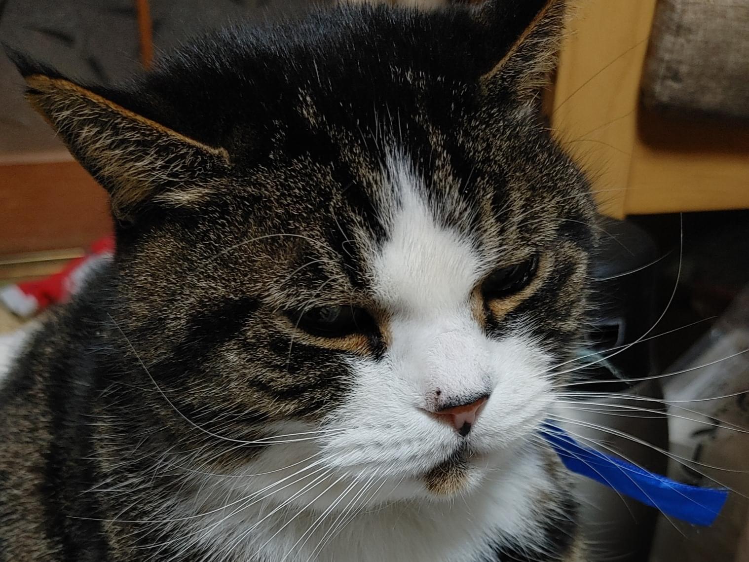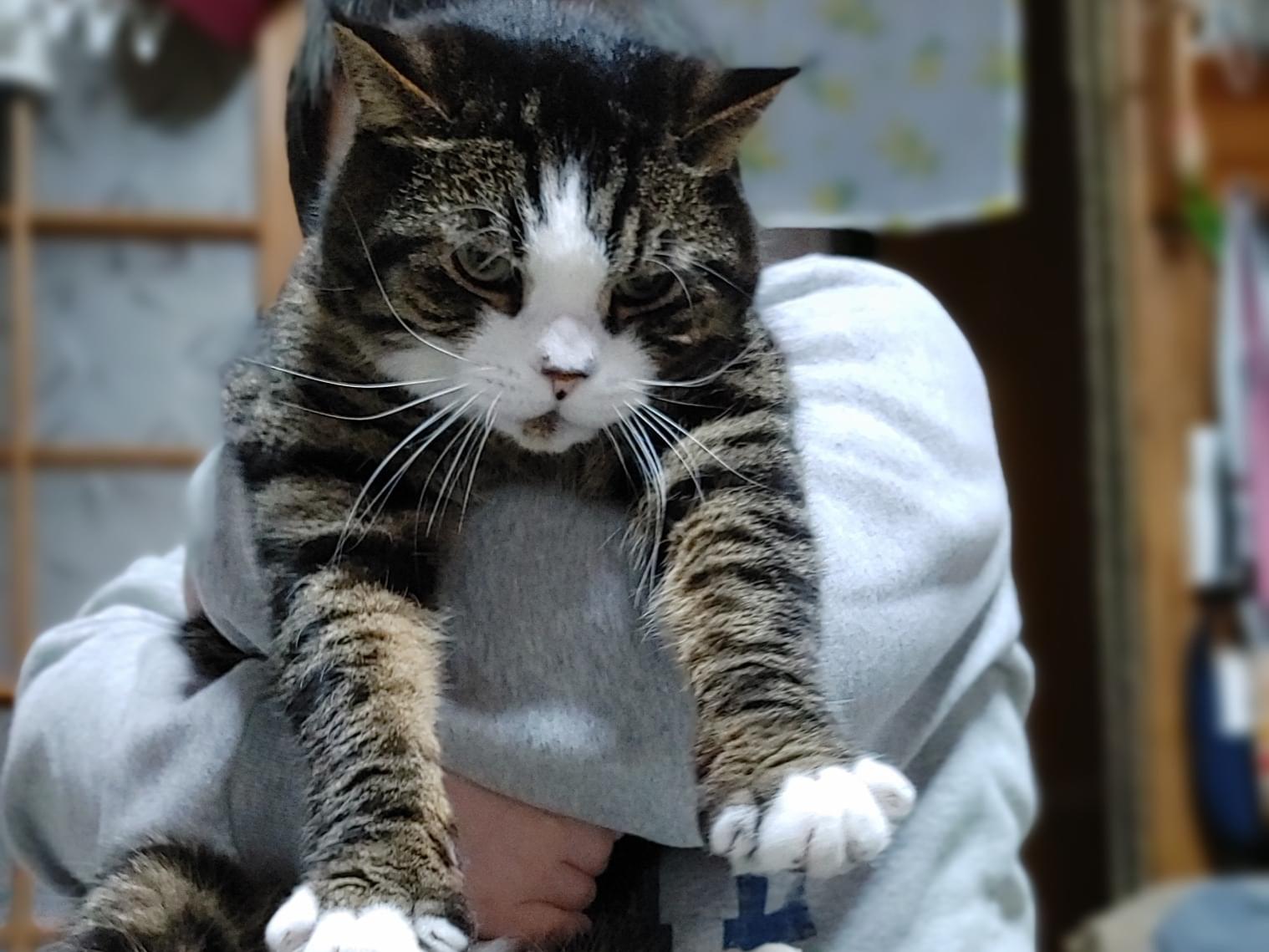 人懐っこくておしゃべりが好き。段ボール箱に入るのが大好き。チュールが大好きで「ごわ~ん、ごわ~ん」とおねだりします。