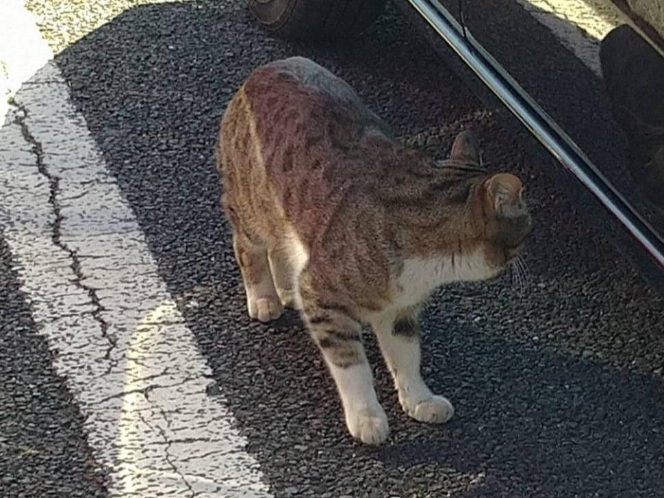 比較的綺麗で、人が近くによっても嫌がらず、こちらを見つつゴロゴロくつろいでいました。駐車場のため心配で、暫く近くに居たのですが、触ることは出来ませんでした。
