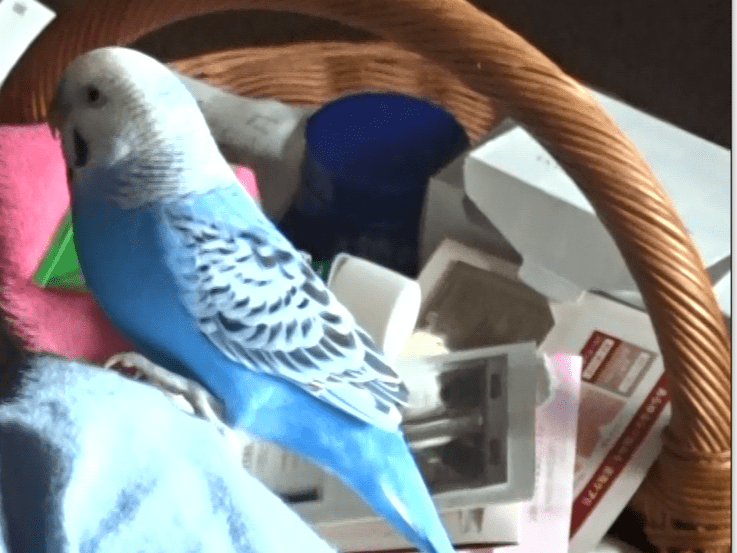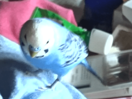 水色のオスの手乗りセキセイインコです。しゃべります。
