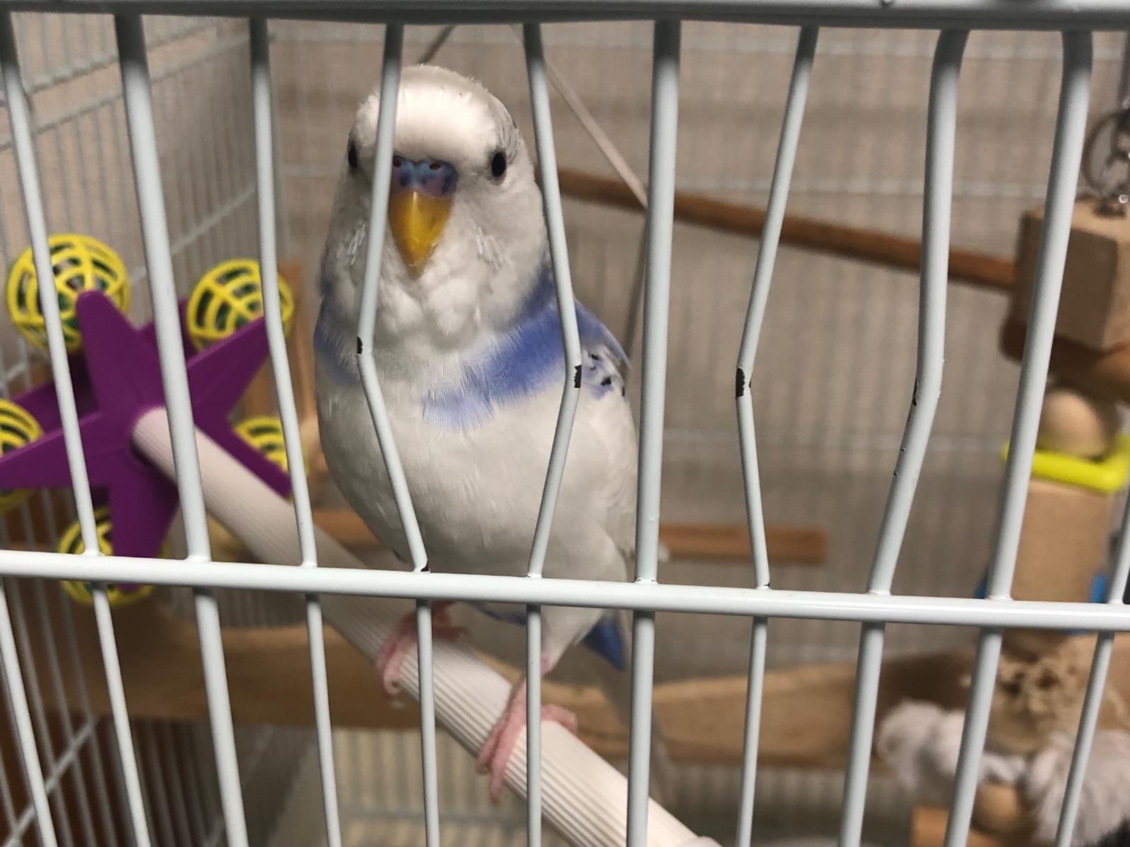 白青黒点大人セキセイインコ探しています。人懐っこいですが慣れない物に臆病です。