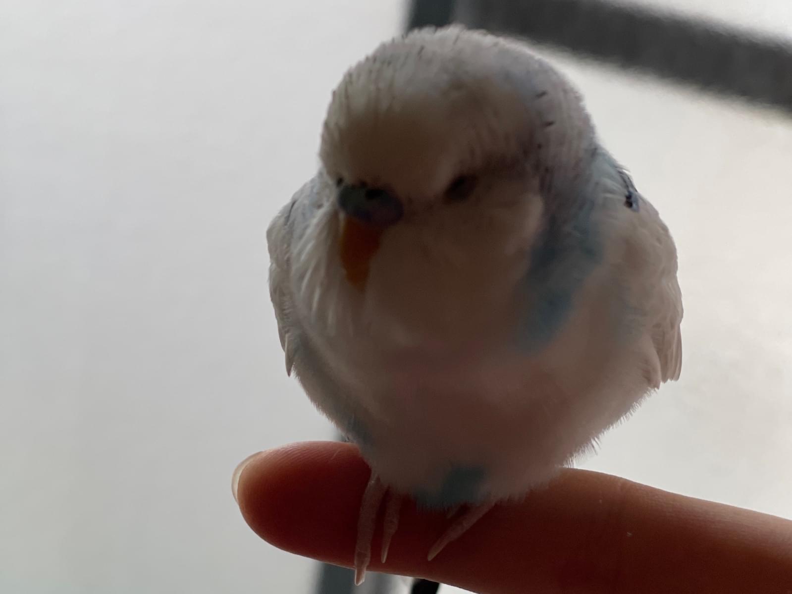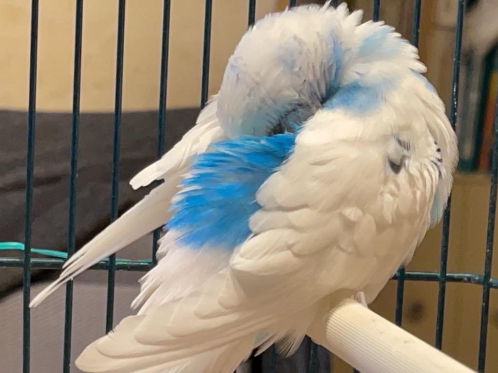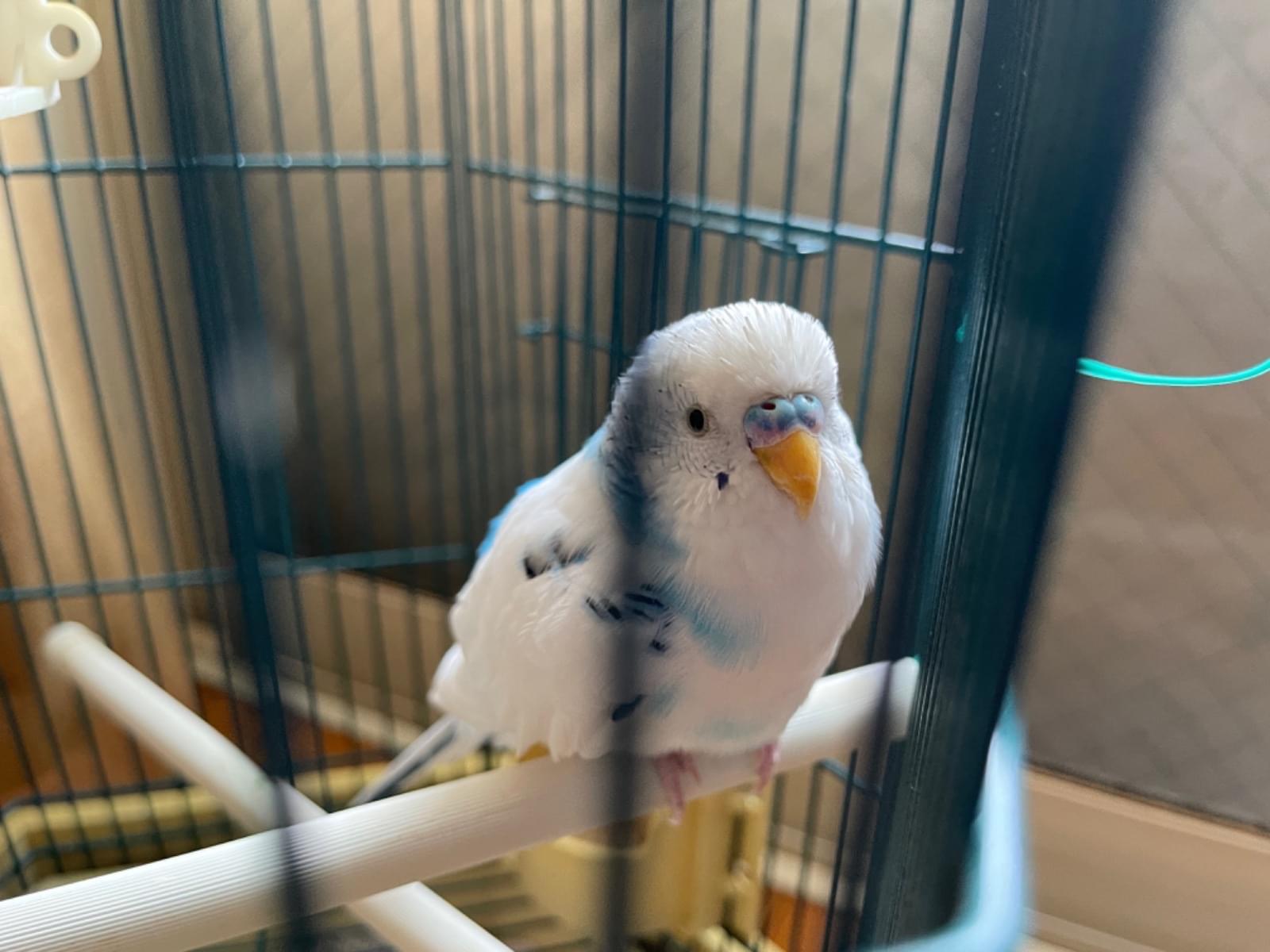 2023/3/5 午前10:30頃 白・青のセキセイインコを保護しました。左足、左羽に少し違和感があるように見えます。