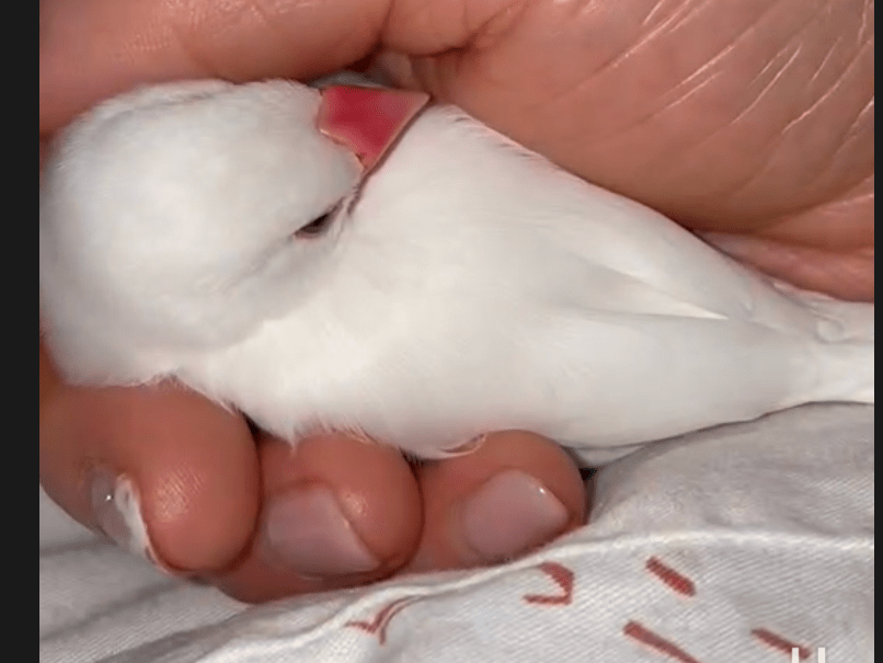 白い手乗りの文鳥です。