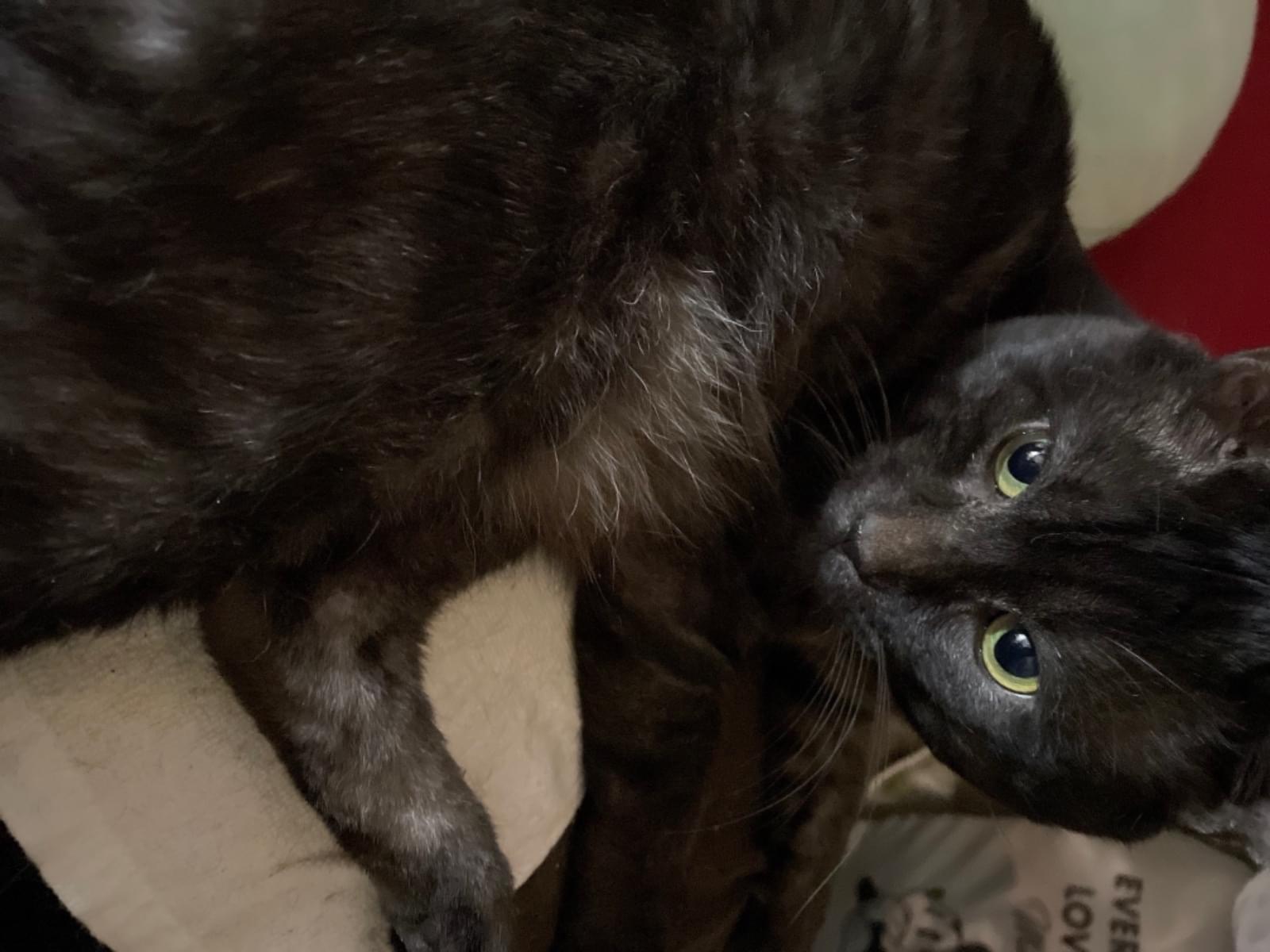 大きい黒猫が家からいなくなりました。探しています!