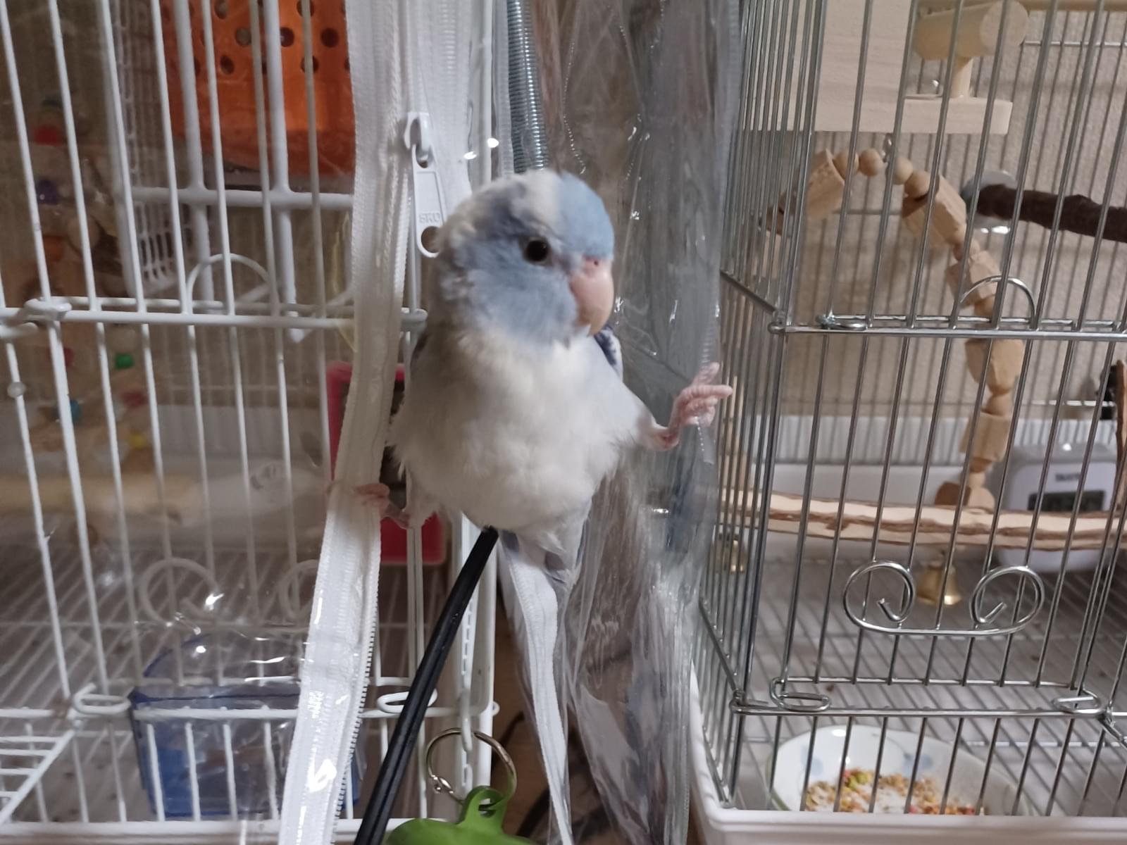 マメルリハインコで頭がブルー、背中がグレー、お腹が白で体長が12.3㎝位です。