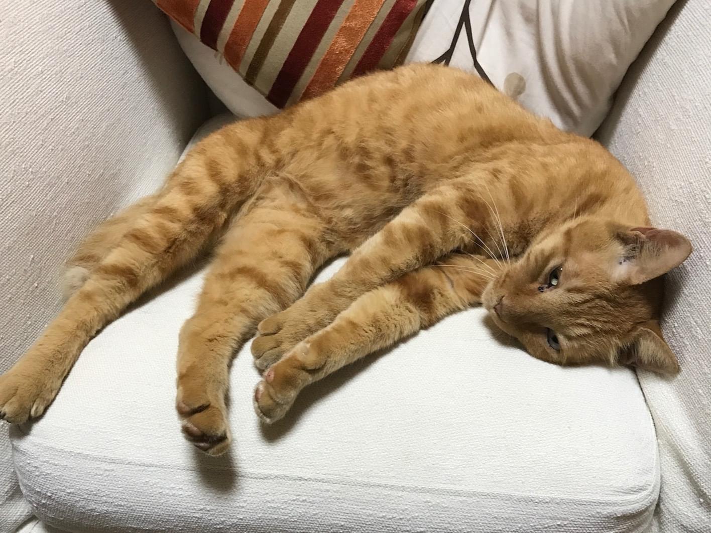 11/3現在の茶トラちゃん。お布団で添い寝もしてくれるし、オモチャでもよく遊びます(買ってきたオモチャを1日でズタボロに瞬殺w)。きっと飼い主さんにかわいがられていたはず。当方宅ではあまりかまってあげられないので、早く本当のおうち、家族の元に帰してあげたいです。