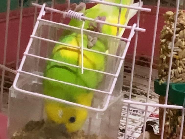 黄色と緑色のセキセイインコのライムちゃんがいなくなっちゃいました。