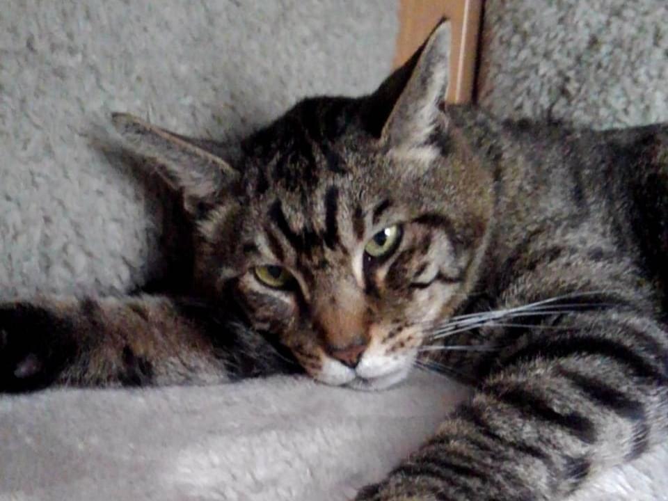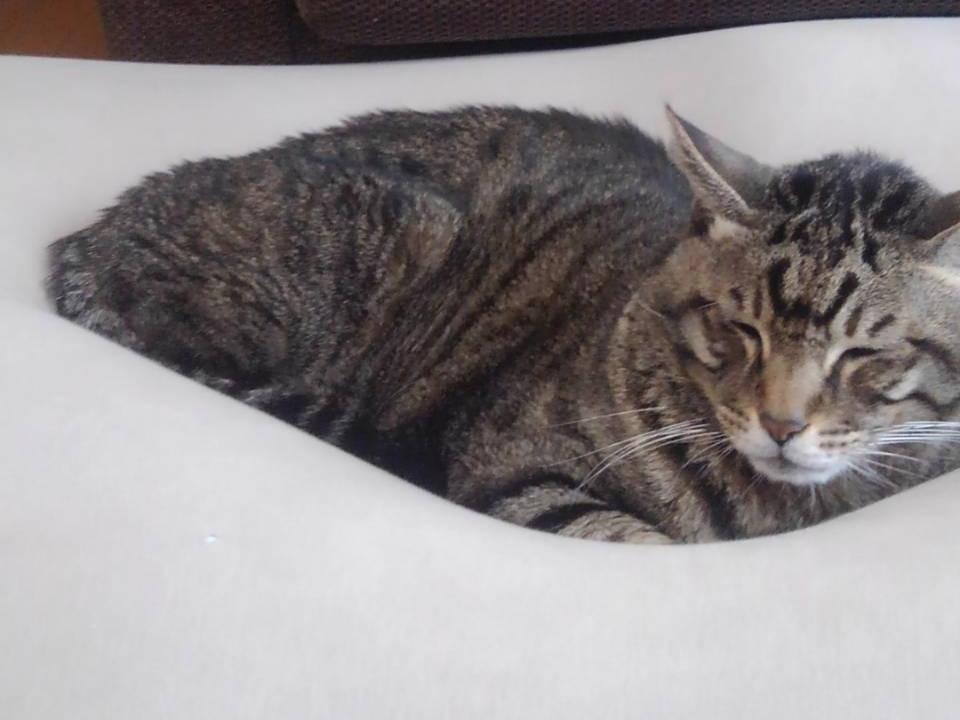お腹の肉がたるんでいるキジトラ柄の猫を探しています。