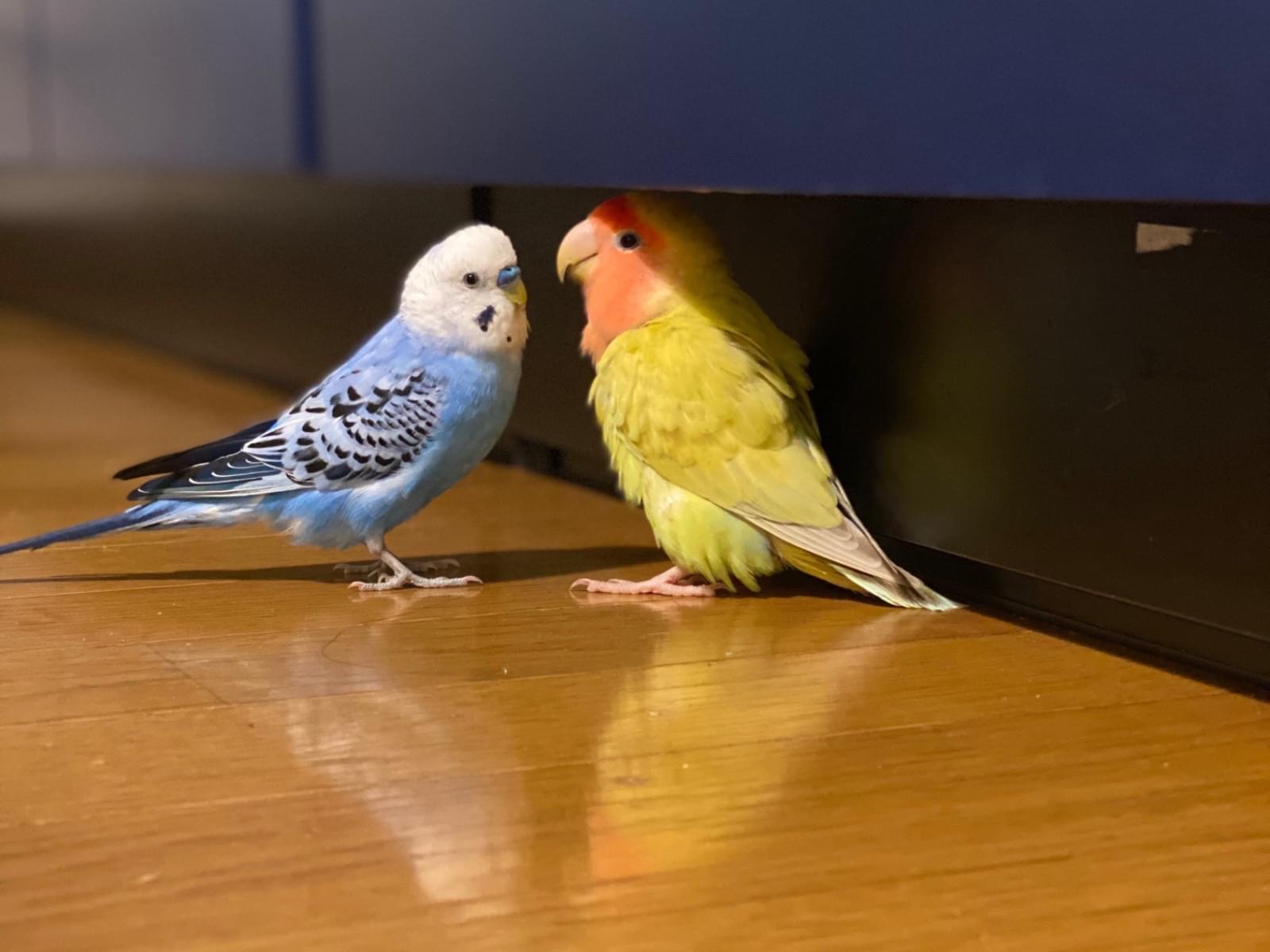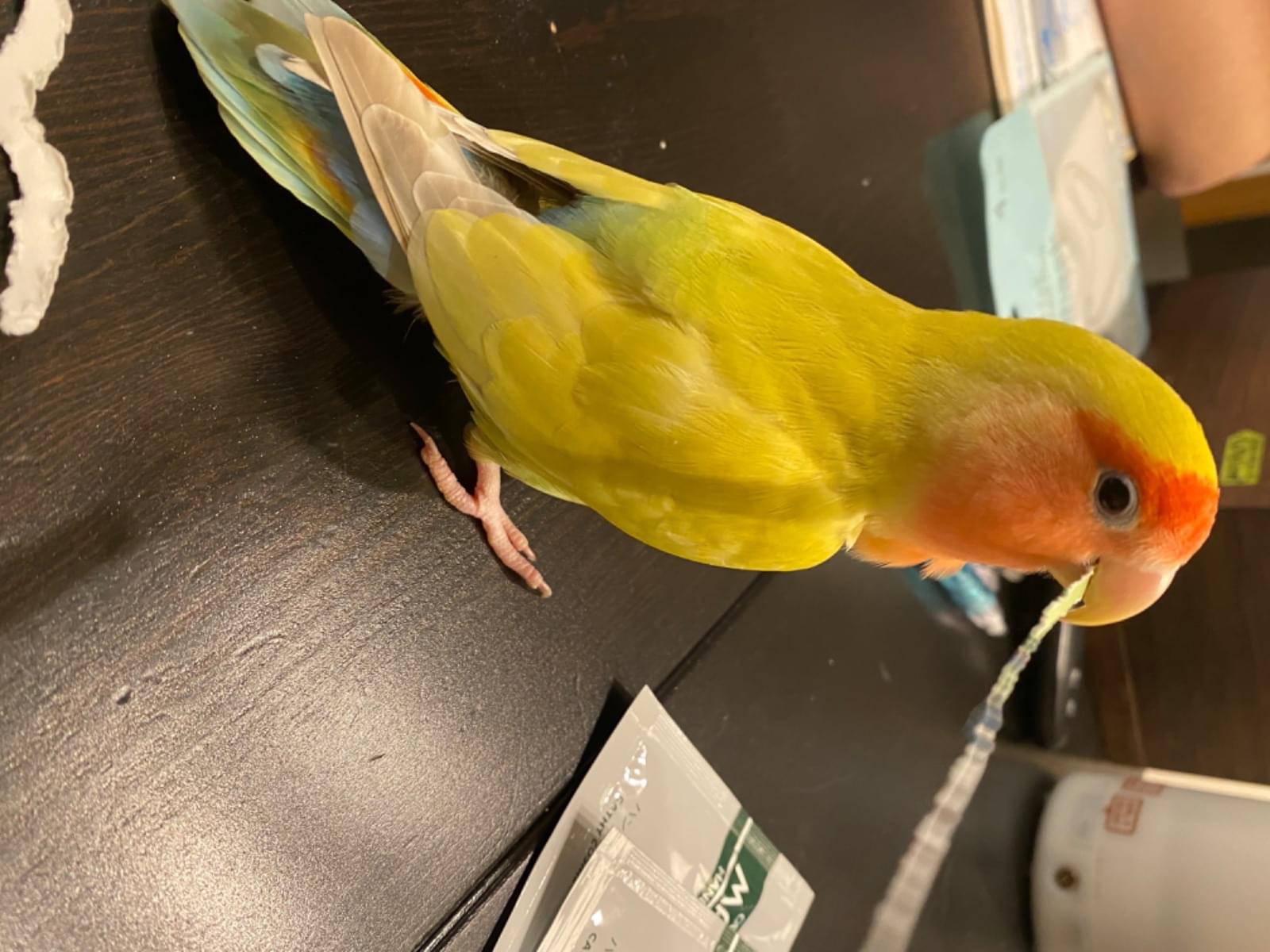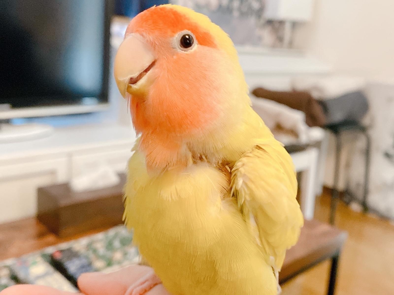 コザクラインコ/黄色/頭赤〜オレンジ/背中青/羽白