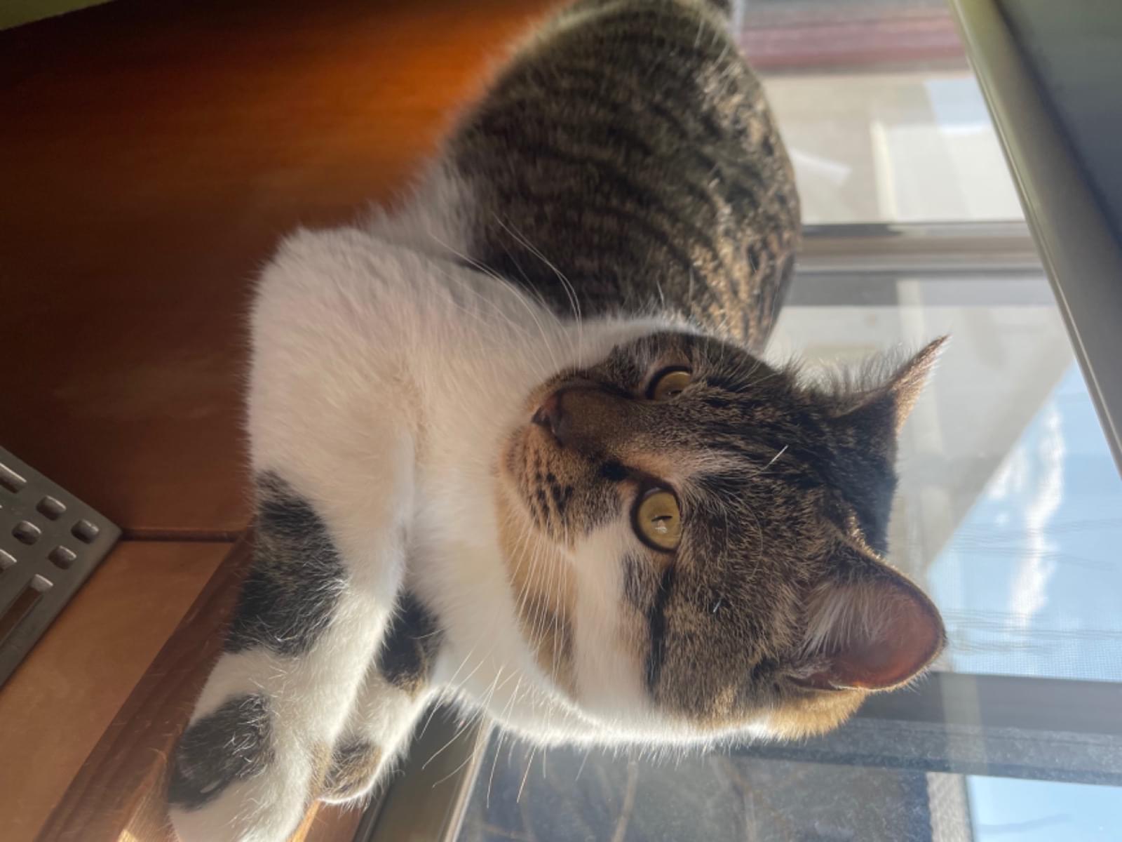足はブチで後ろ足のほうは靴下を履いてるような感じ