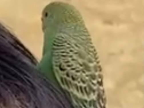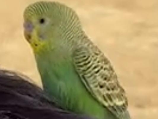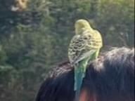 人馴れしている黄・緑色のセキセイインコを目撃しました