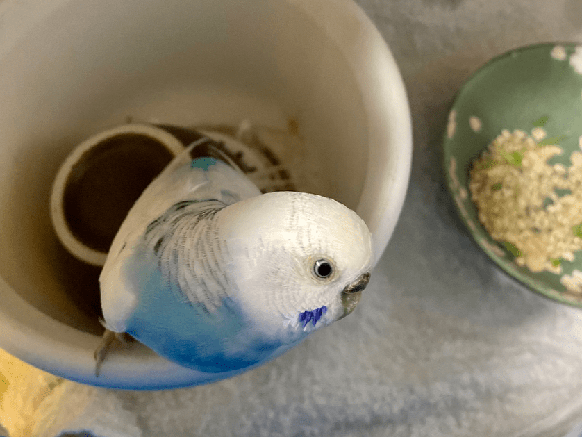 【特徴】白が多めで一部きれいなブルー、ほっぺが濃い紫