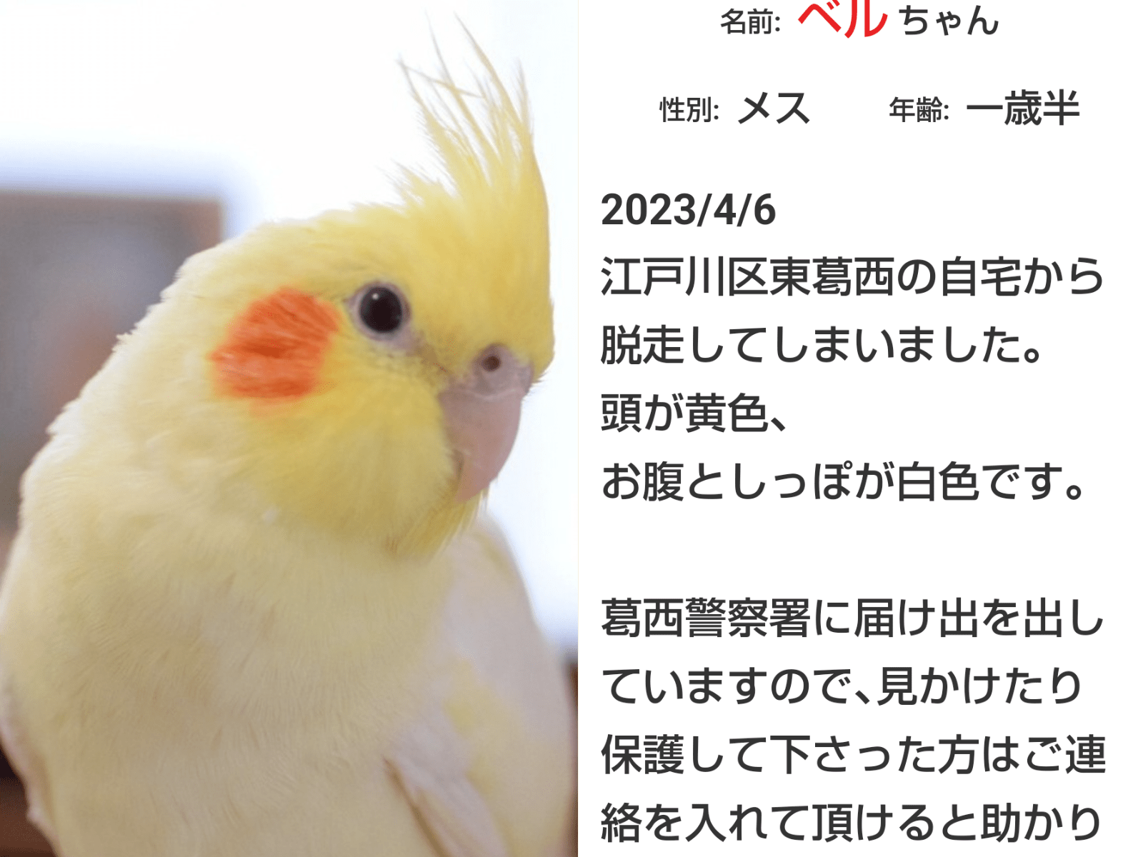 お見かけになりましたらご連絡お願いいたします。