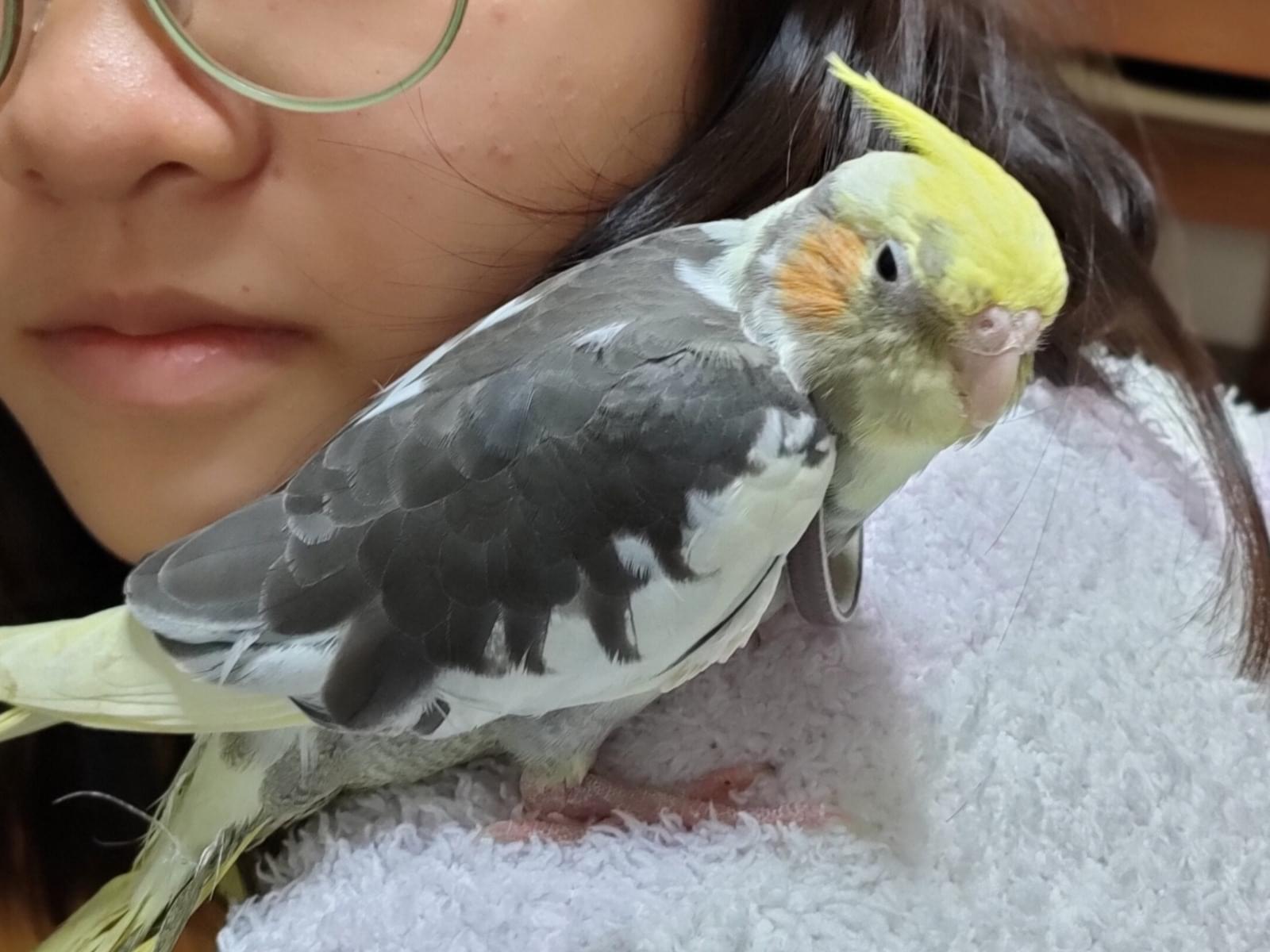 慣れていればミッキーマウスマーチを少しだけ歌います。ホッペのいろが少し薄く尾羽がの量が2、3本ほどです。