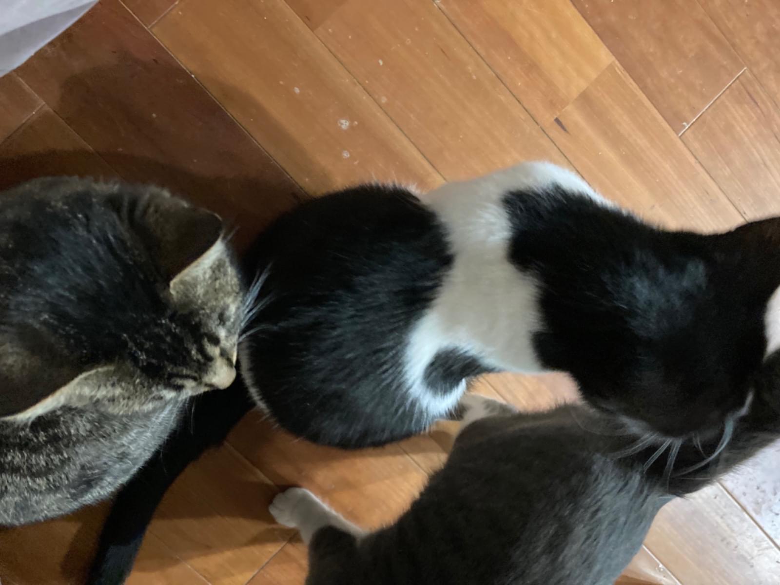 ハチワレ猫、白黒、背中に白いハートマークのような模様あり。6、7年程のめす猫、寒がりです。人懐っこい性格です。