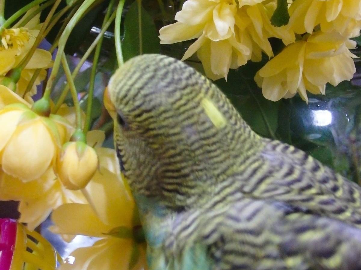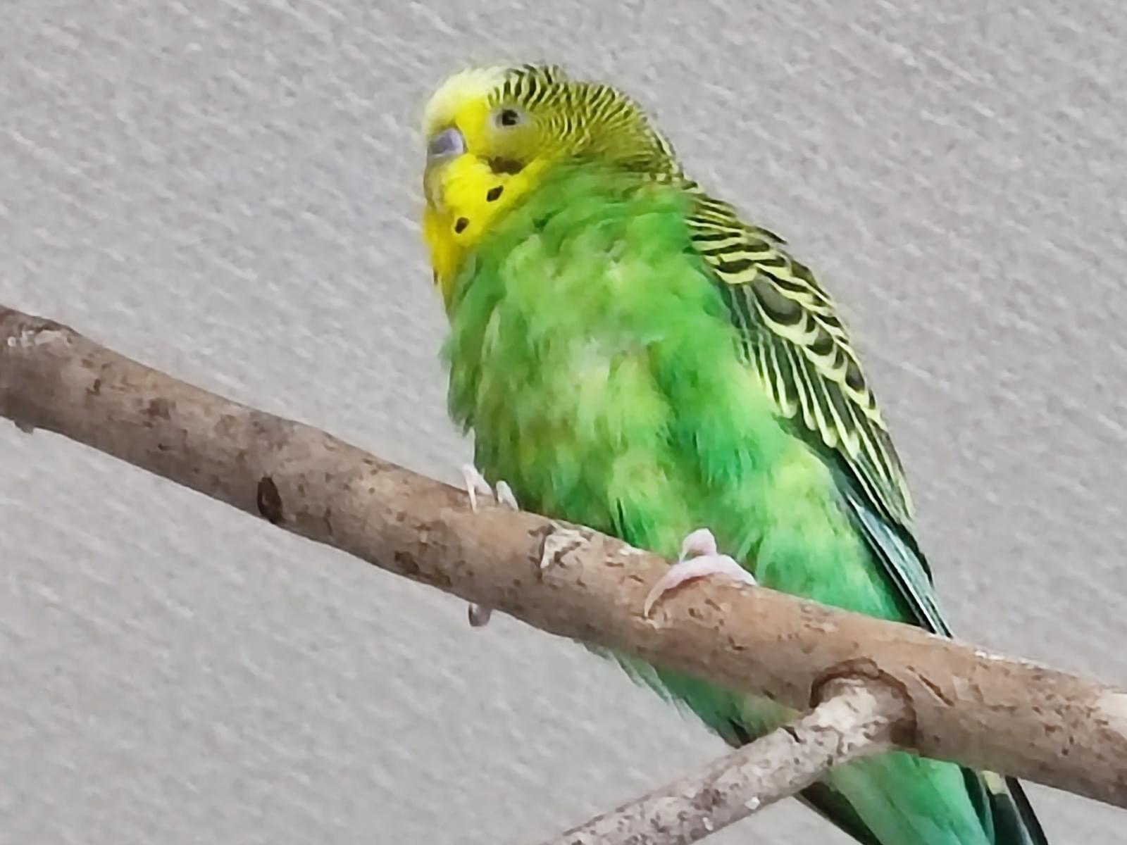 セキセイインコ ゆずちゃん探しています。黄緑 頭の後ろ黄色い丸い羽あり