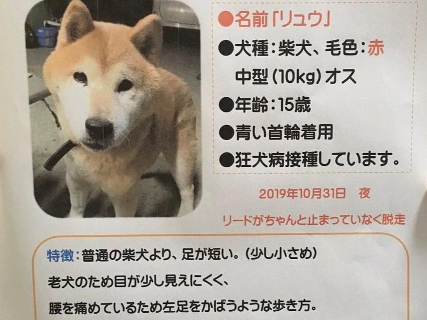 青い首輪をした赤柴を探しています