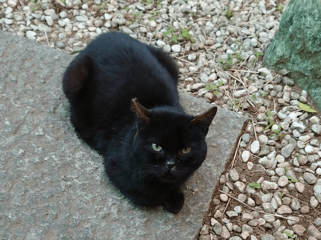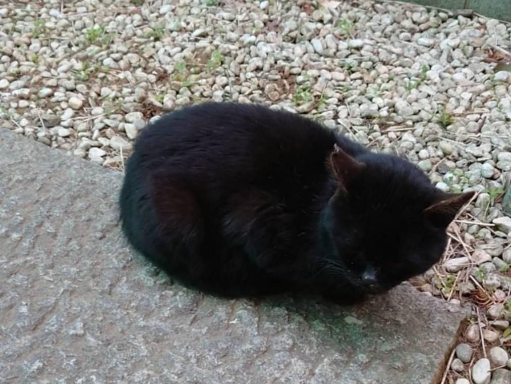 黒猫ちゃんは、小柄で他の猫ちゃんが庭を通っても威嚇することなく、ただ見てるような猫ちゃんです。