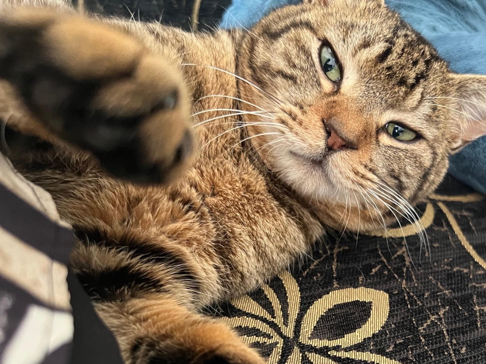 とても人懐っこく、保護した際も甲高い声で鳴いてすり寄ってきました。
