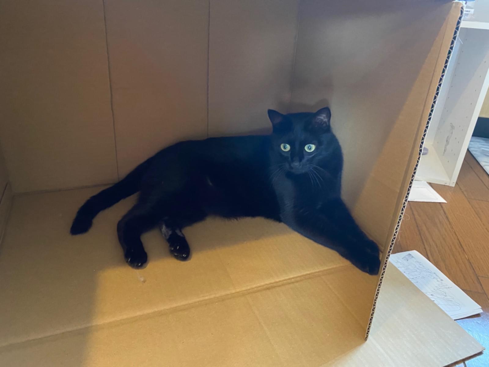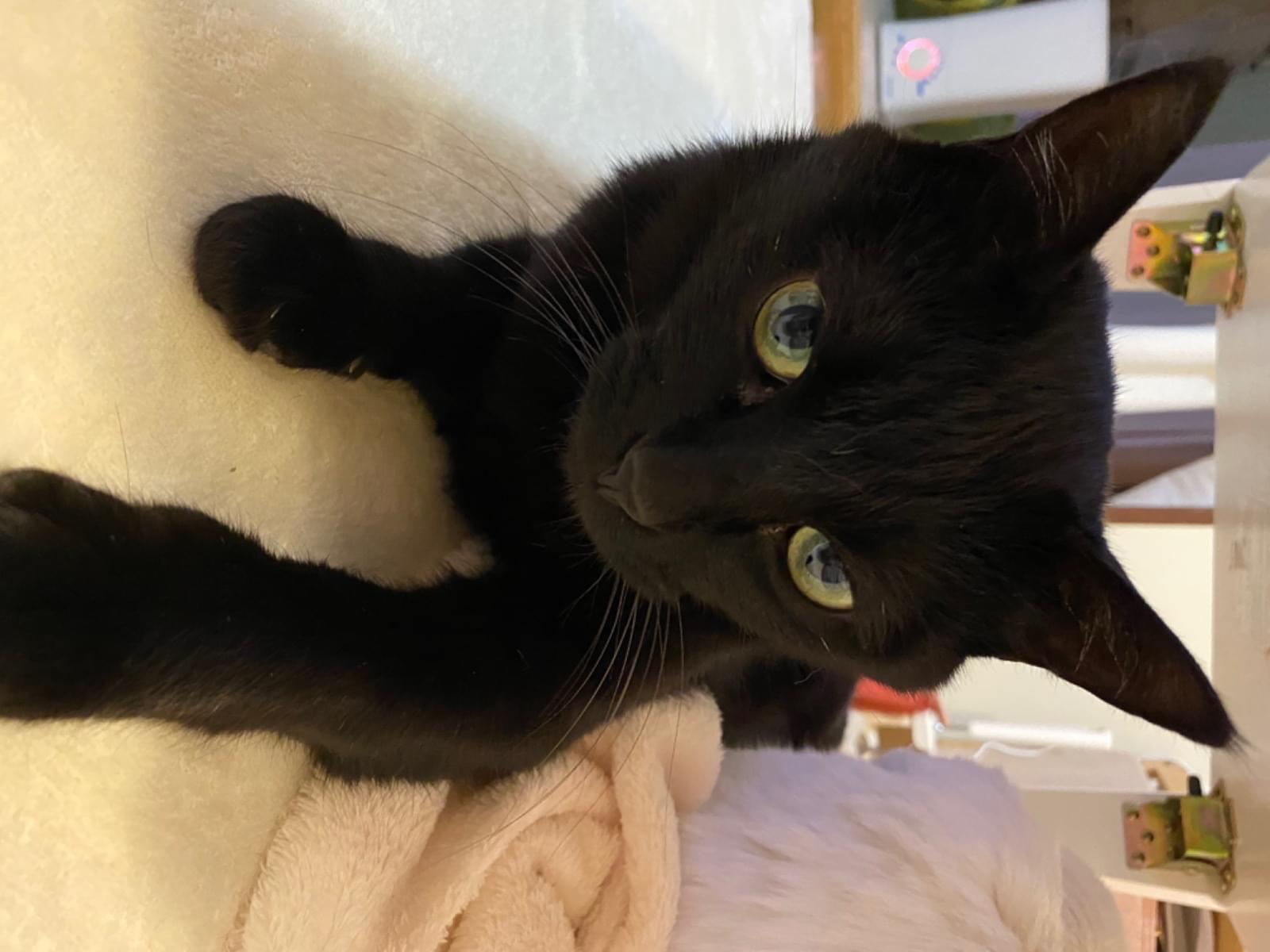 左足が少し白く、左足つけねらへんに脱毛がある黒猫を探しています