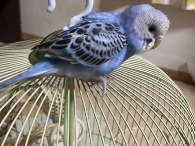 水色のメスのインコです。鼻は茶色ぽいです。