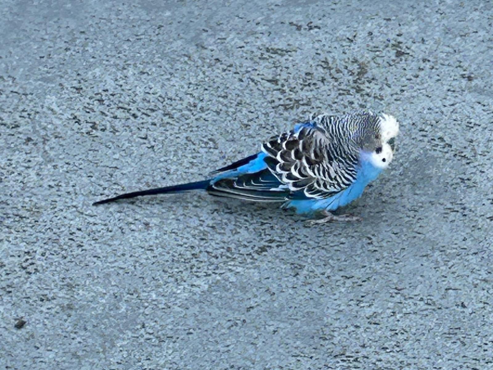 屋上駐車場で歩いてる青色のインコを目撃しました。保護しようとしましたが、手を近づけると怖がる素振りをみせたのでそのままにしておきました。