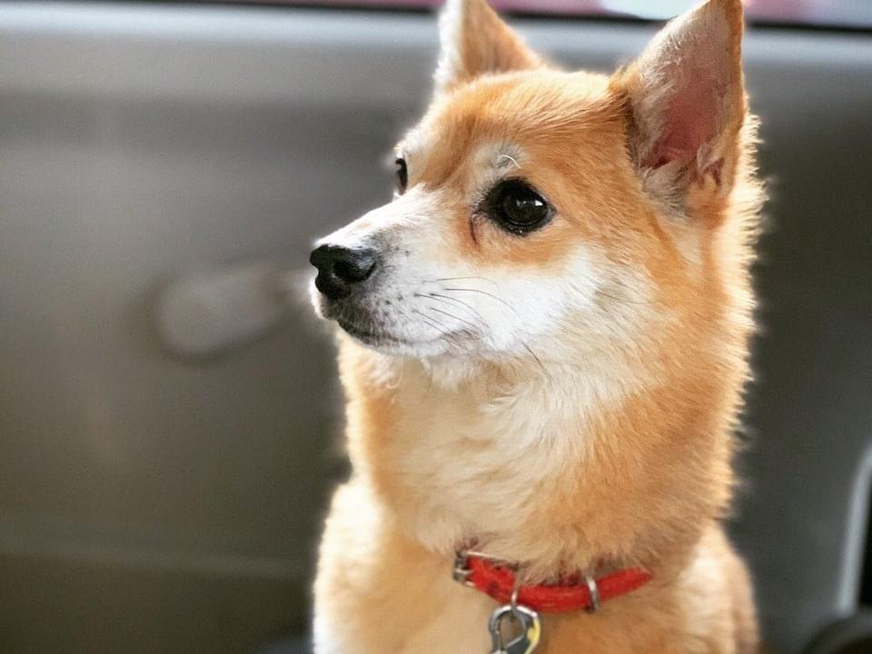 赤い首輪をしたキツネ似の犬を探しています