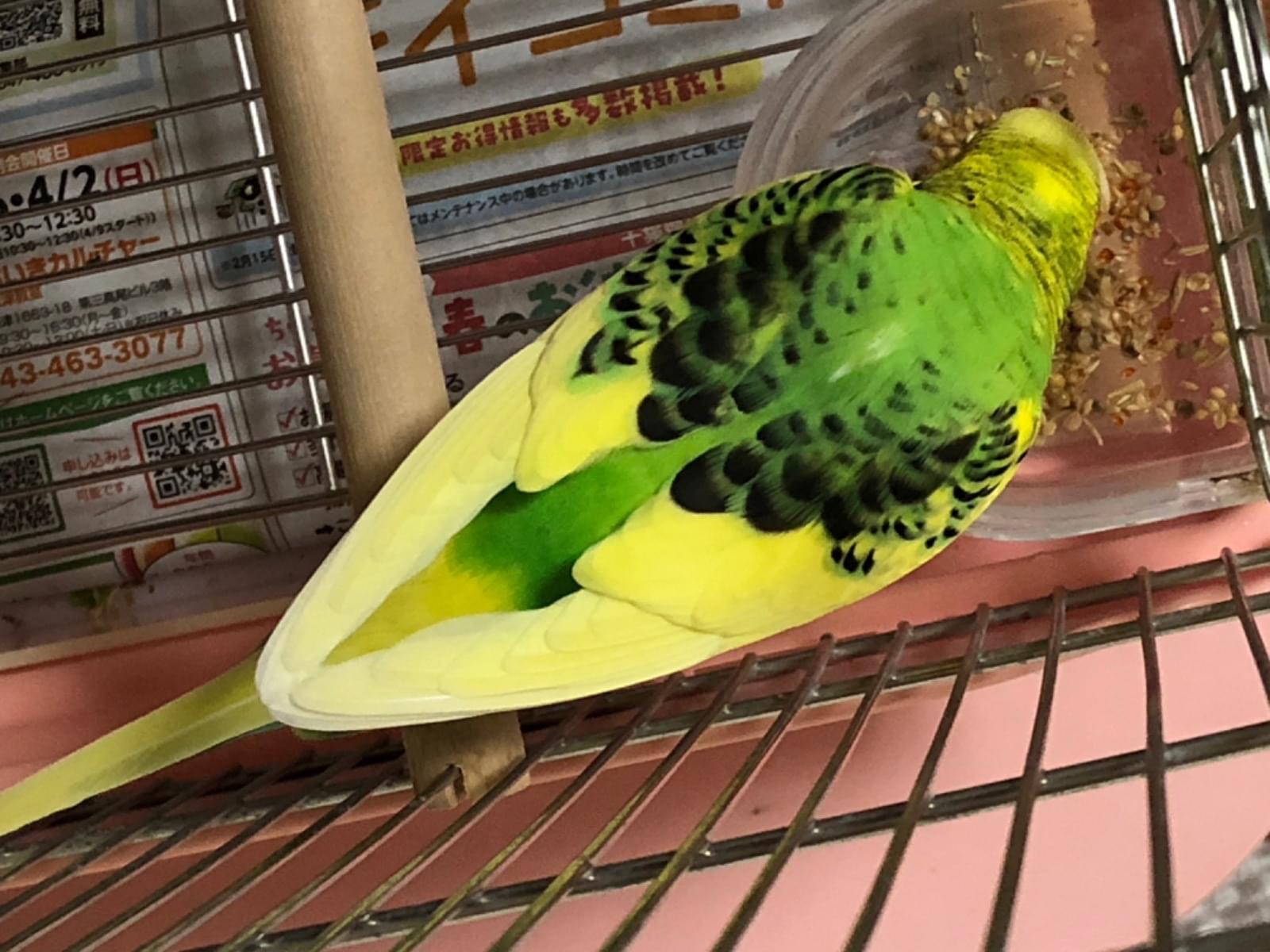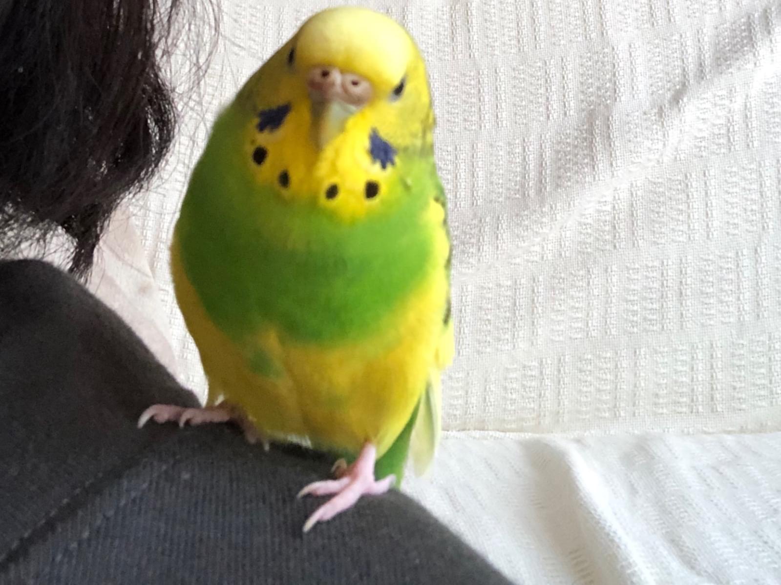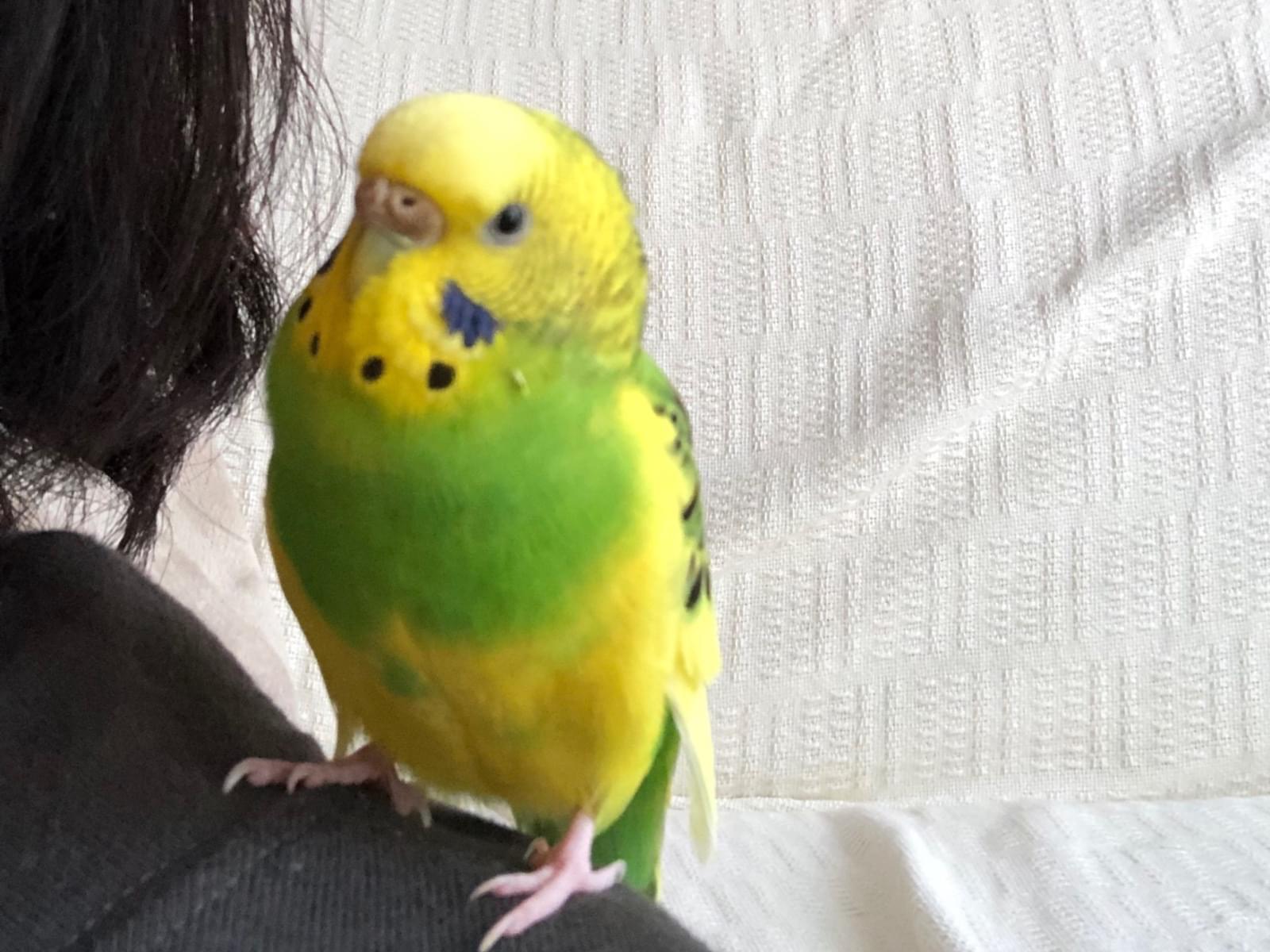 黄色いセキセイインコを探しています。胸に黄緑のエプロンのような模様があります