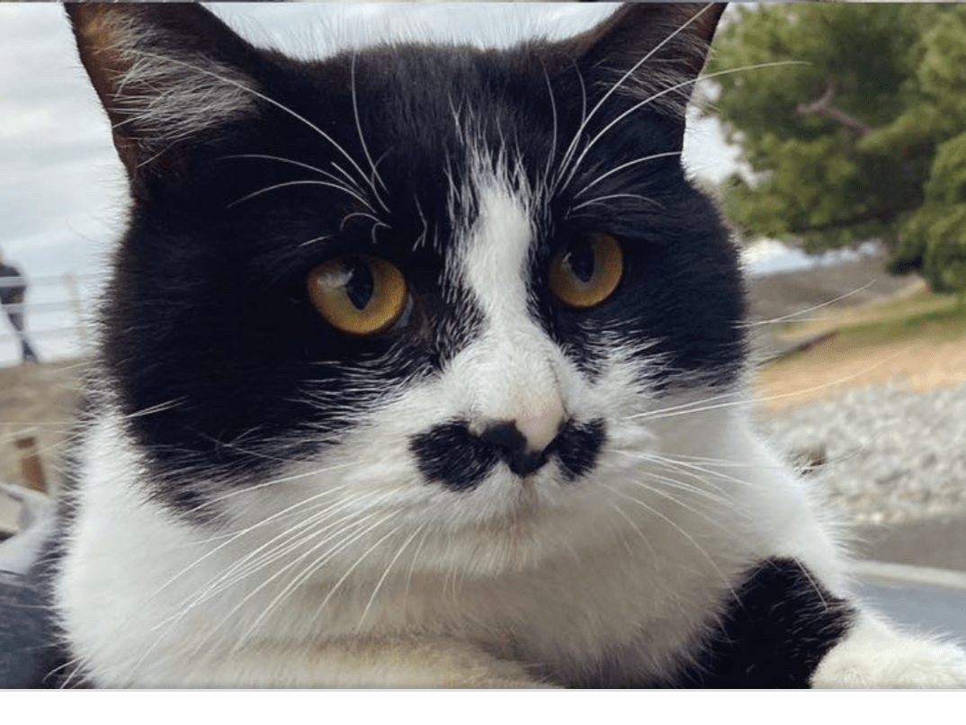 白黒ハチワレのオス猫で人馴れしていて人懐っこい性格です