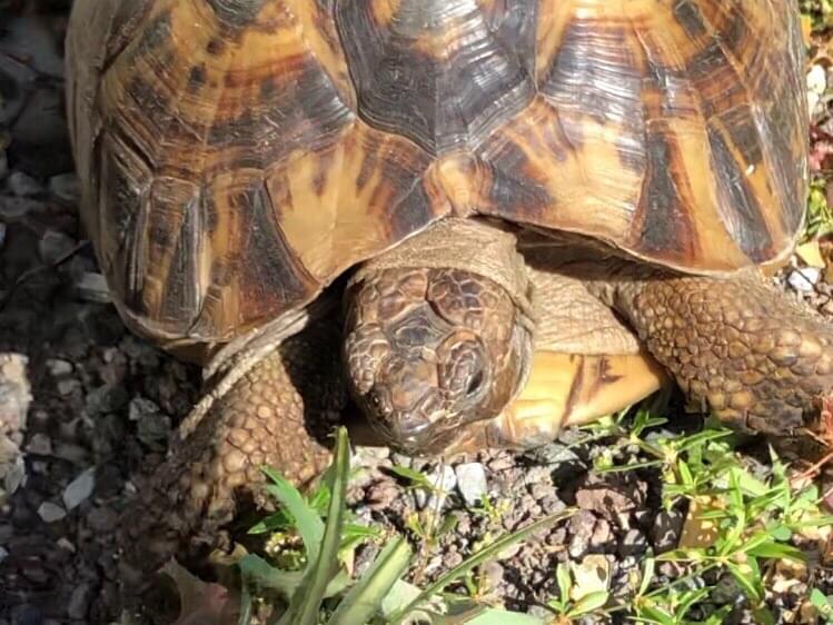 20cmくらいの茶色と黒の模様のギリシャリクガメです。