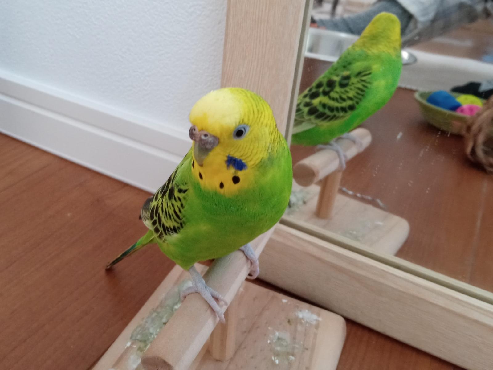 頭が黄色、体が黄緑色でとても人懐っこい子です。