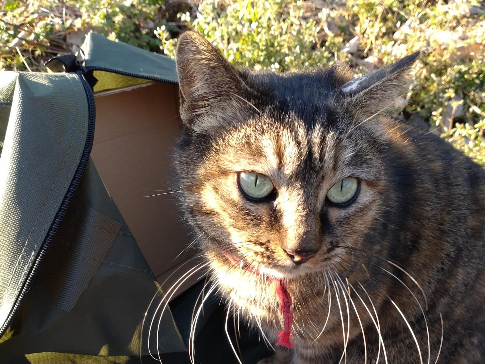 茶、こげ茶、黒色のサビトラの猫を探してます。