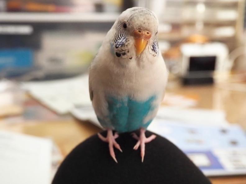メス一歳、おしゃべりはしないです。肩や頭に乗ります。