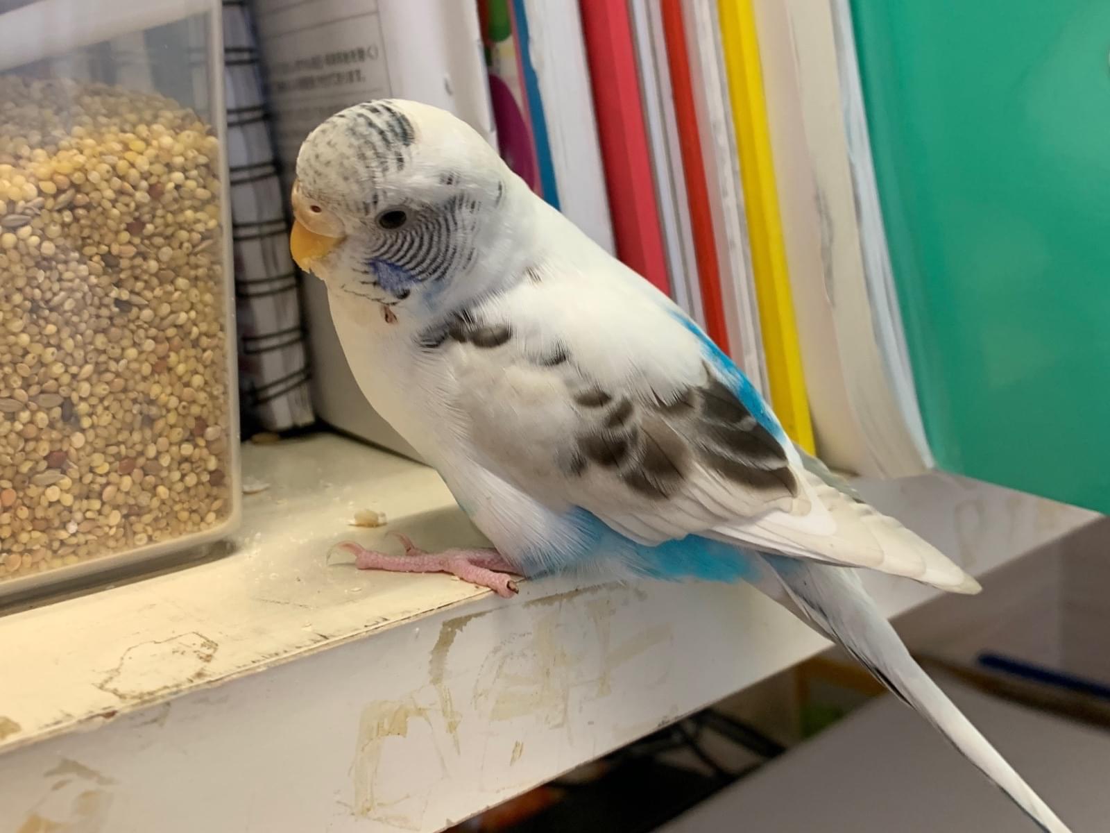 背中白、お腹が青のセキセイインコ(ハルクイン)を探してます。羽にまだらの黒が混ざってます。