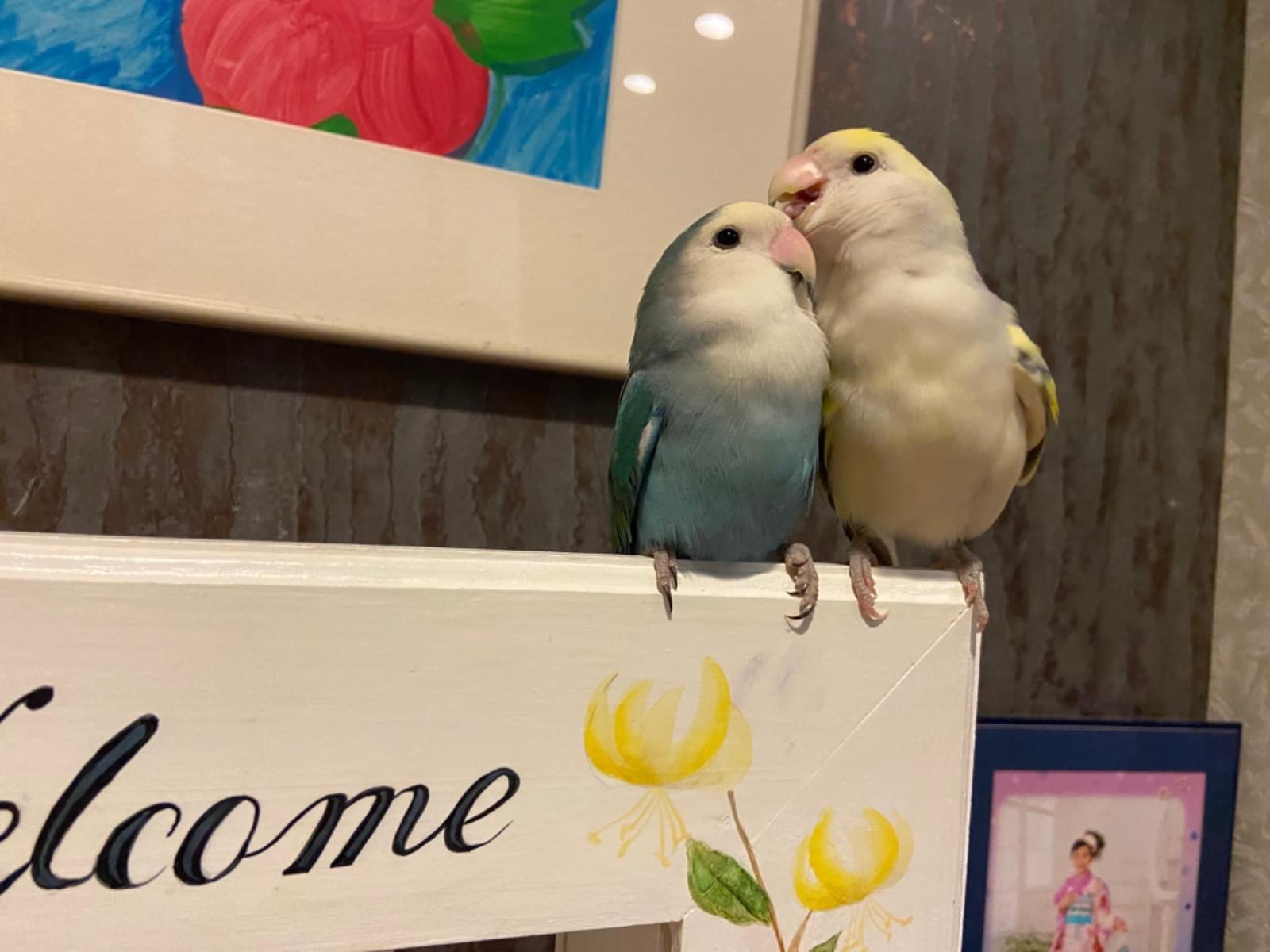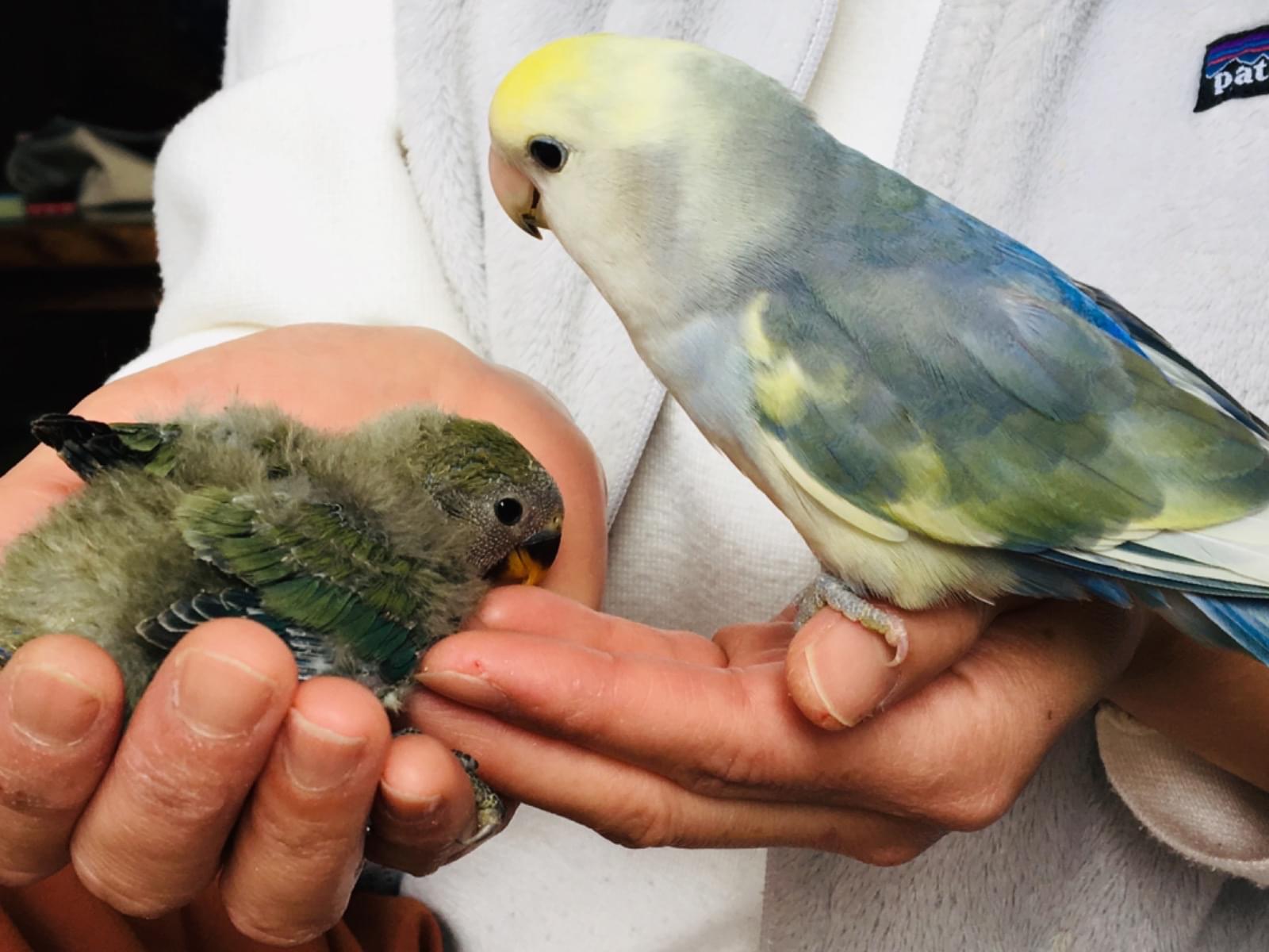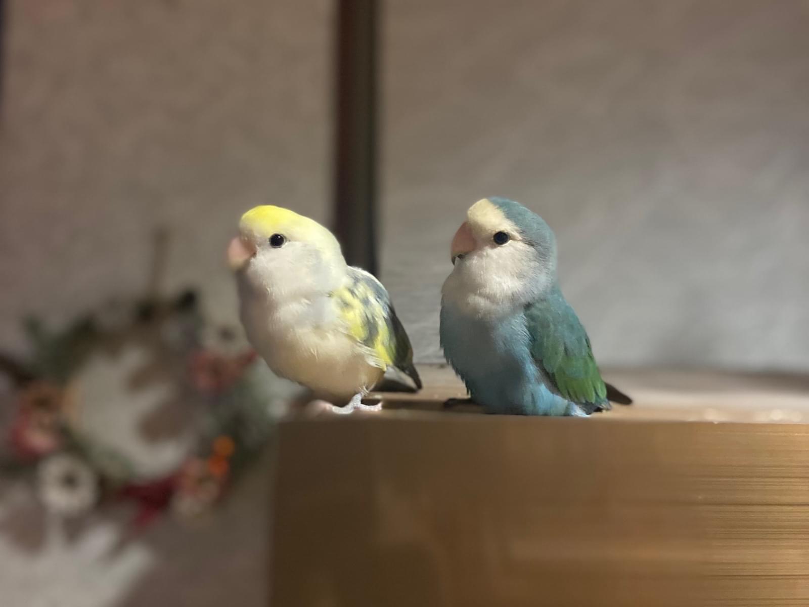 頭がイエローで羽はグレーの小桜インコとブルーの小桜インコ2羽探しています