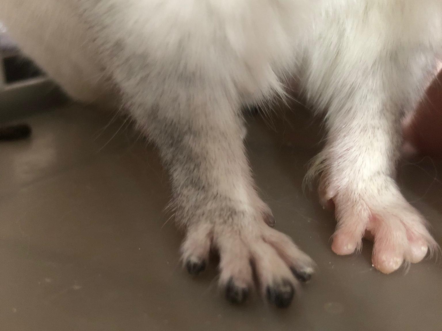 目立つ特徴は左右の爪の色が違います。黒とピンクです。