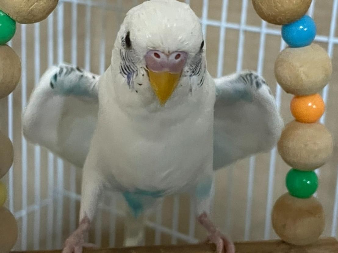 手には乗りませんが、名前を呼ぶと肩にとまります