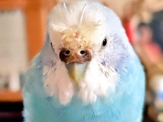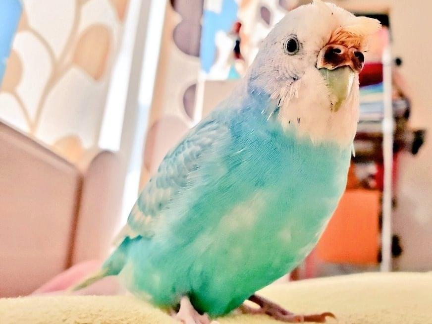 頭部が白く体は水色のセキセイインコを探しています