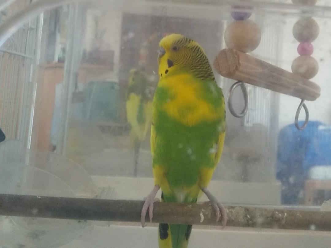 黄色と緑のオスのセキセイインコです。よくしゃべります。
