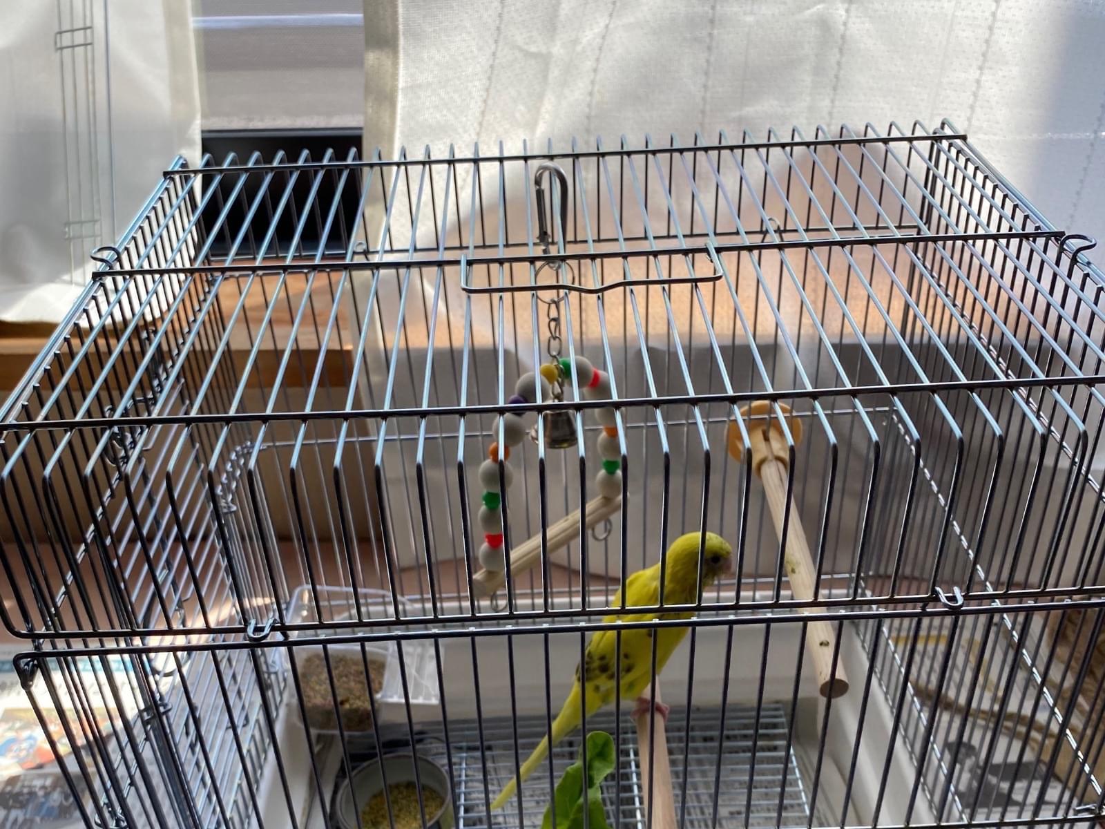 黄色いインコで、尻尾辺りが黄緑色をした特徴のインコです。ひと懐っこく、自分のことをハッピーとおしゃべりします。