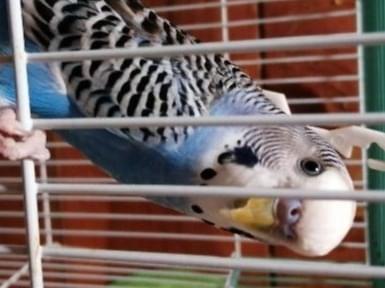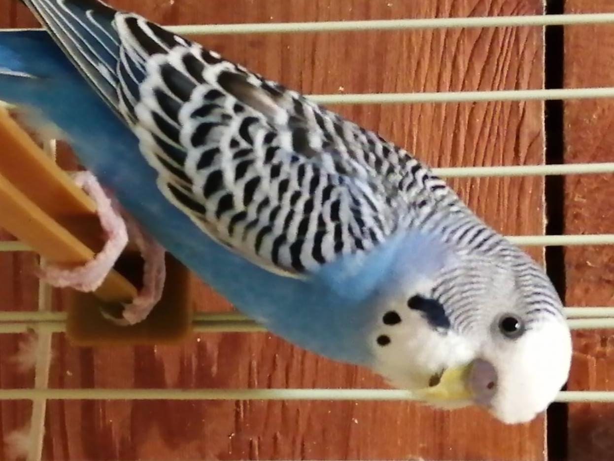 ベースが青色。頭~羽、背中に黒色の模様の入ったオスのセキセイインコを探してます。