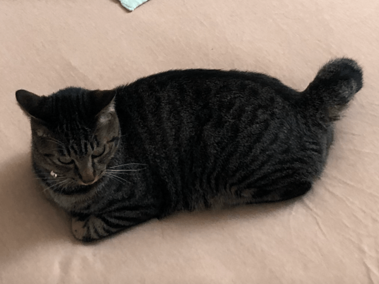 団子のように短い尻尾が特徴のキジトラで、緑と黄色のチェック柄のシュシュタイプの首輪をしております。迷子札には大きく「ぽんちゃん」の文字が書いてあります。(裏には連絡先記載有)