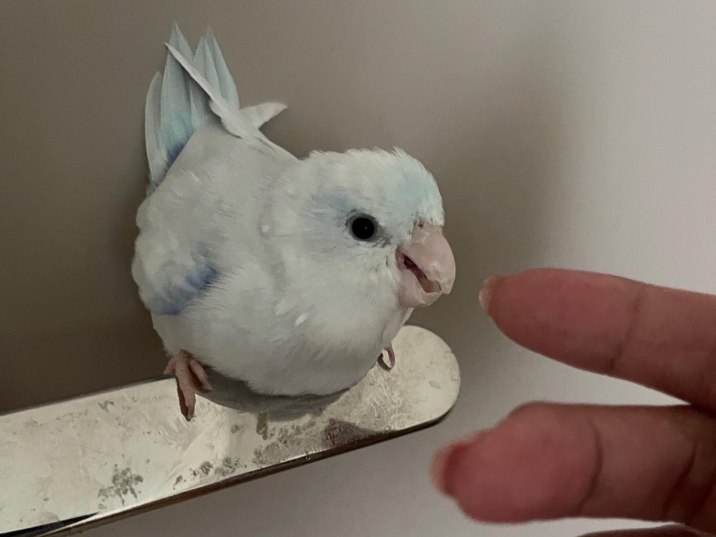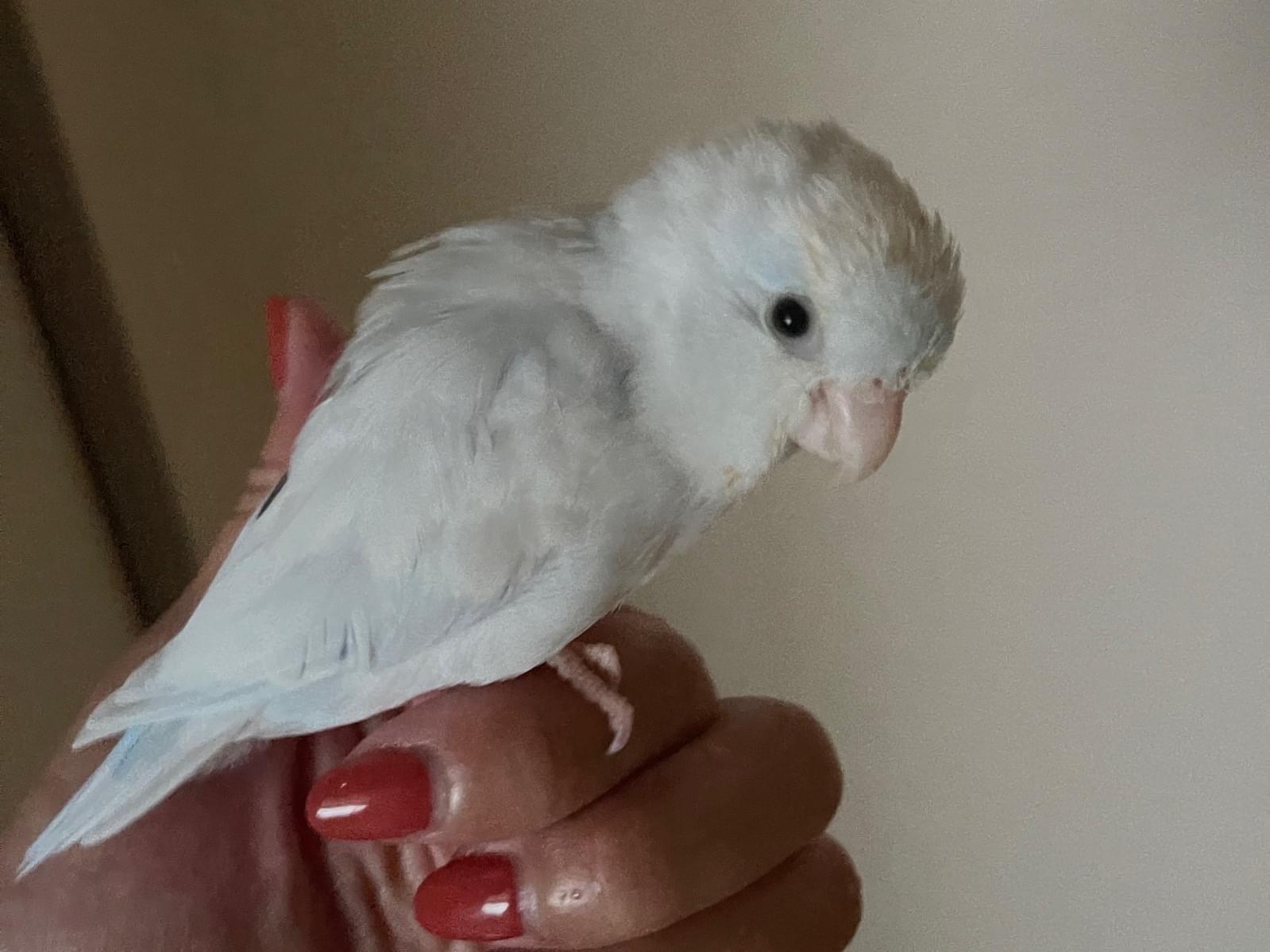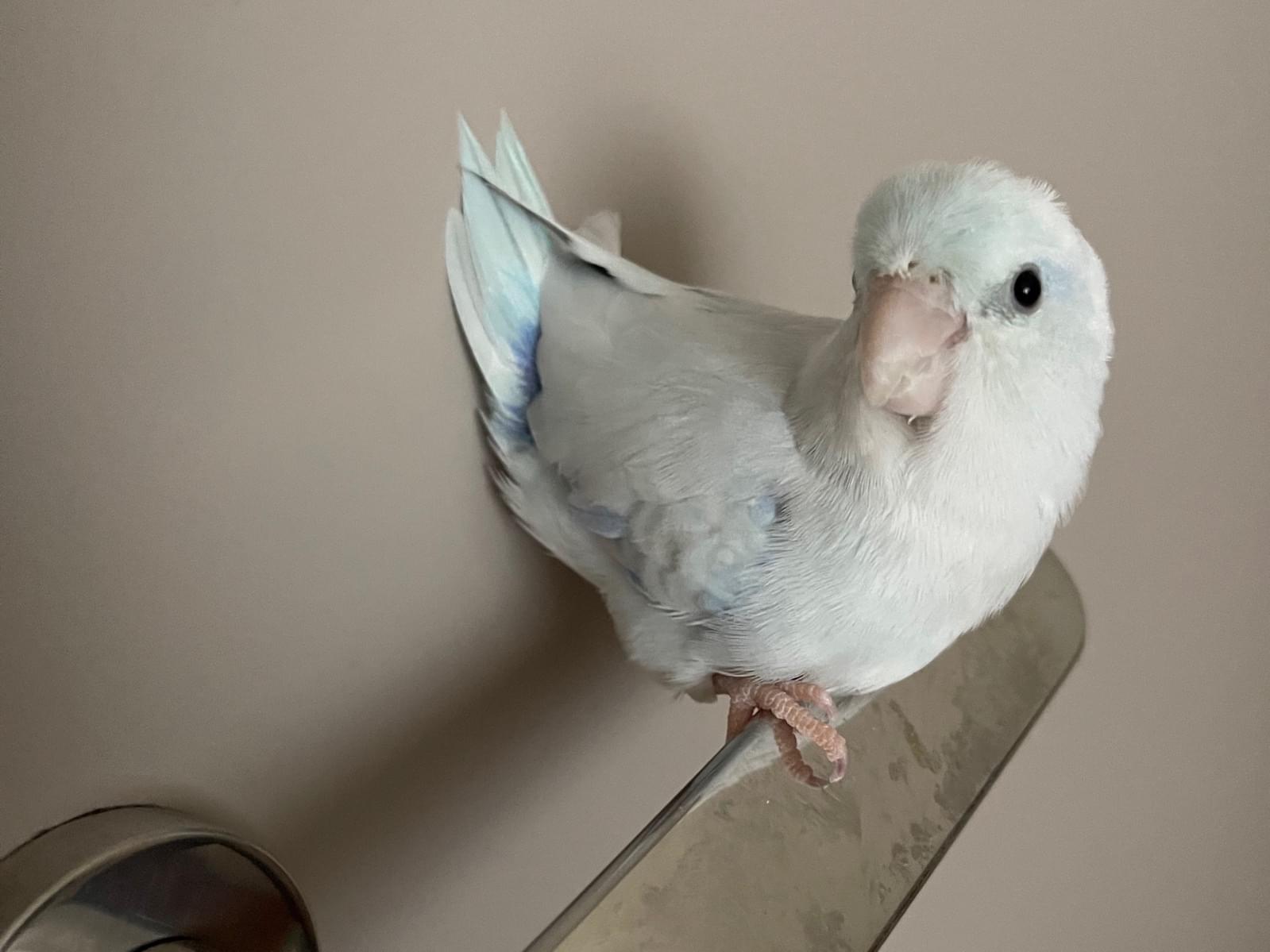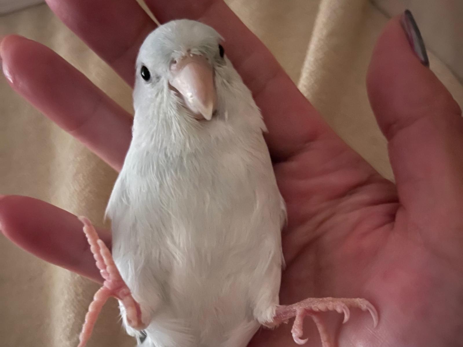 薄い水色のインコ 芦屋浜で迷子になりました。手のひらサイズ