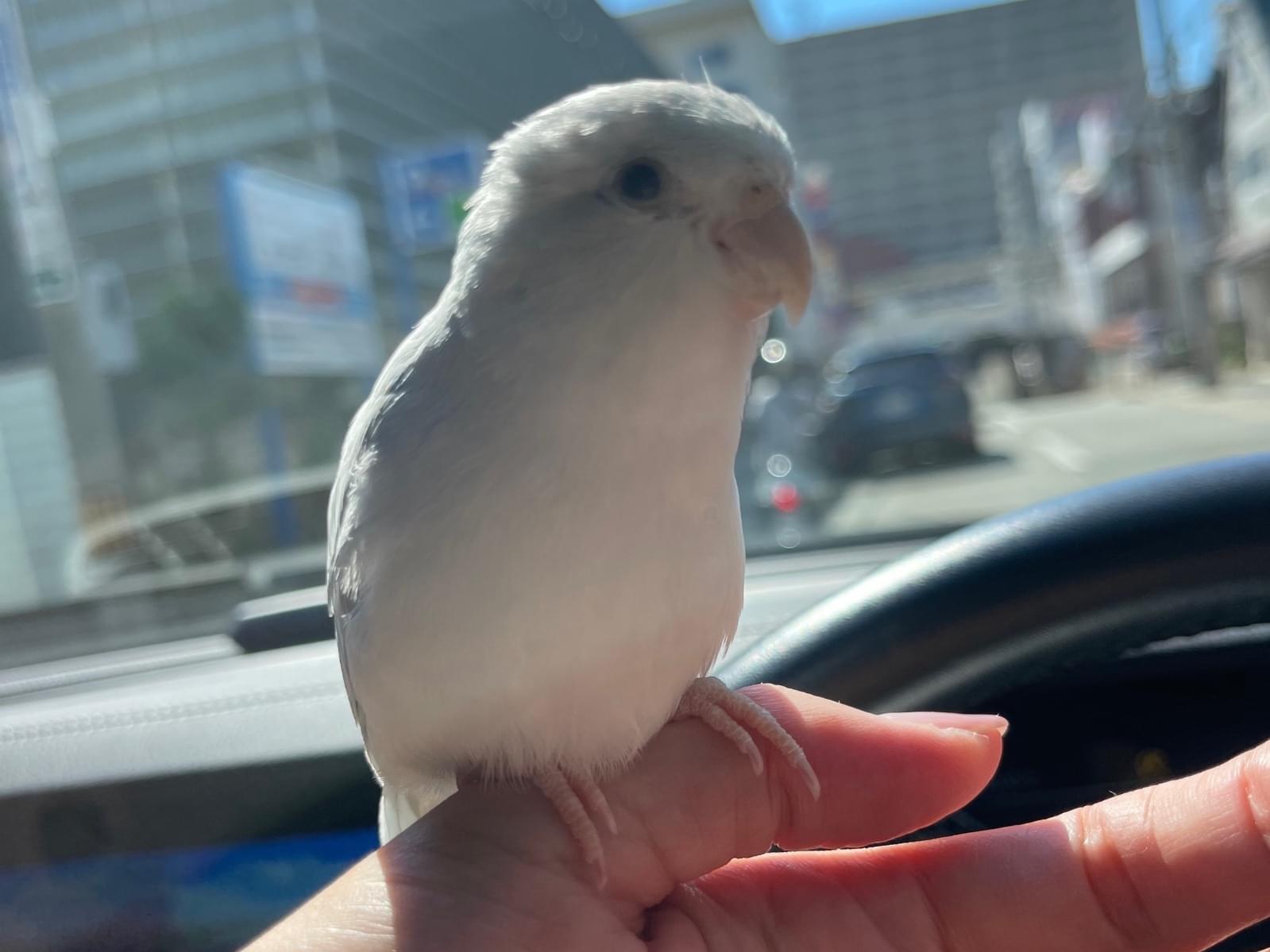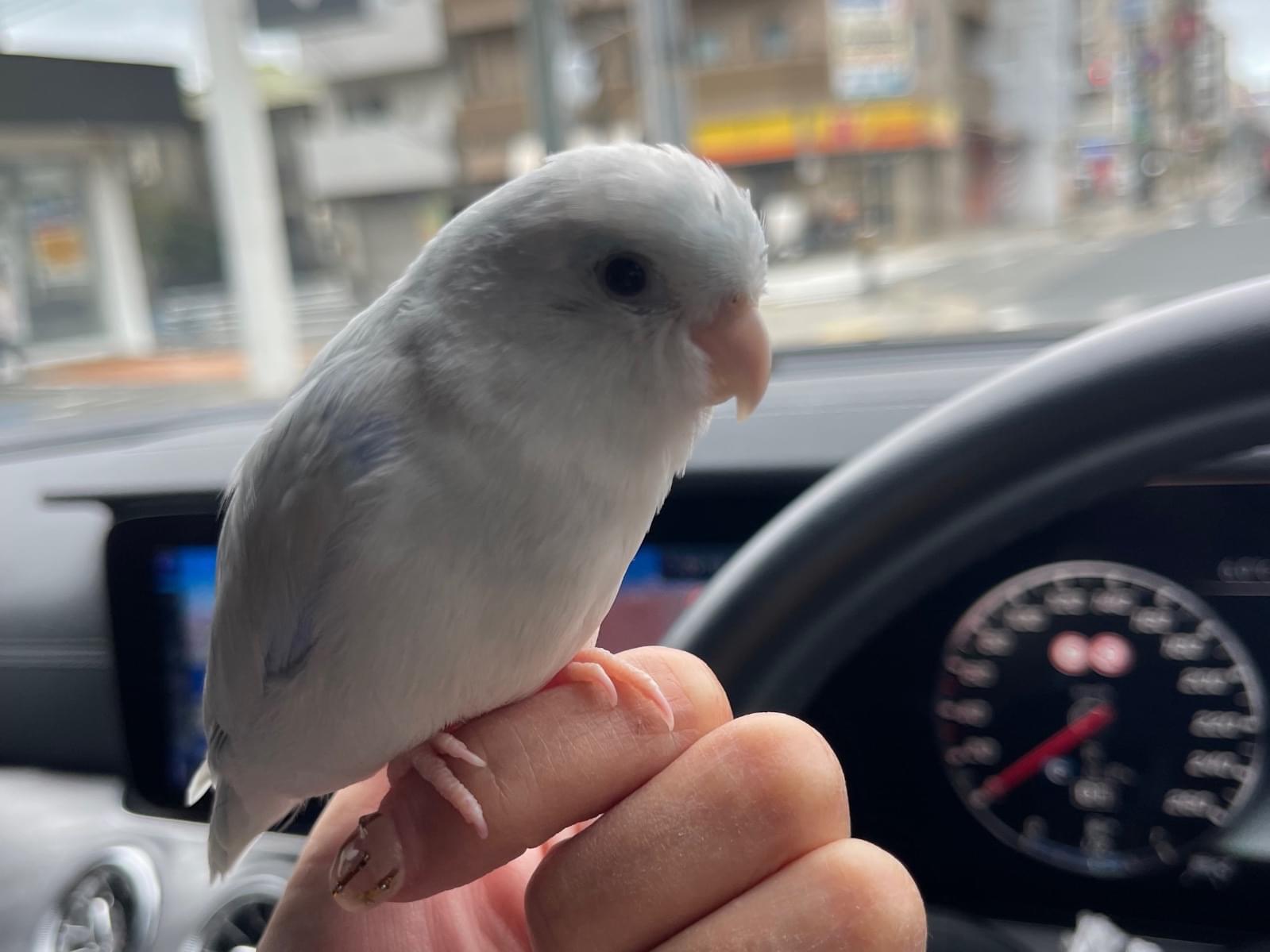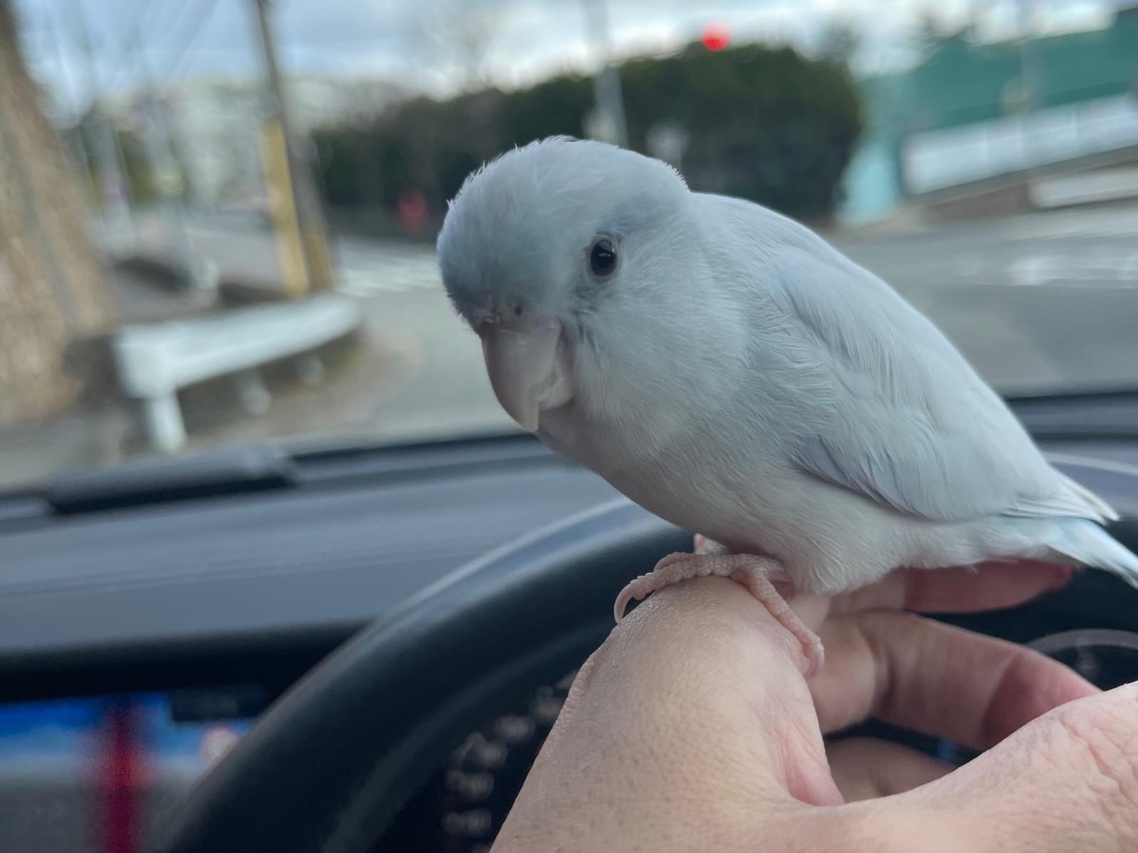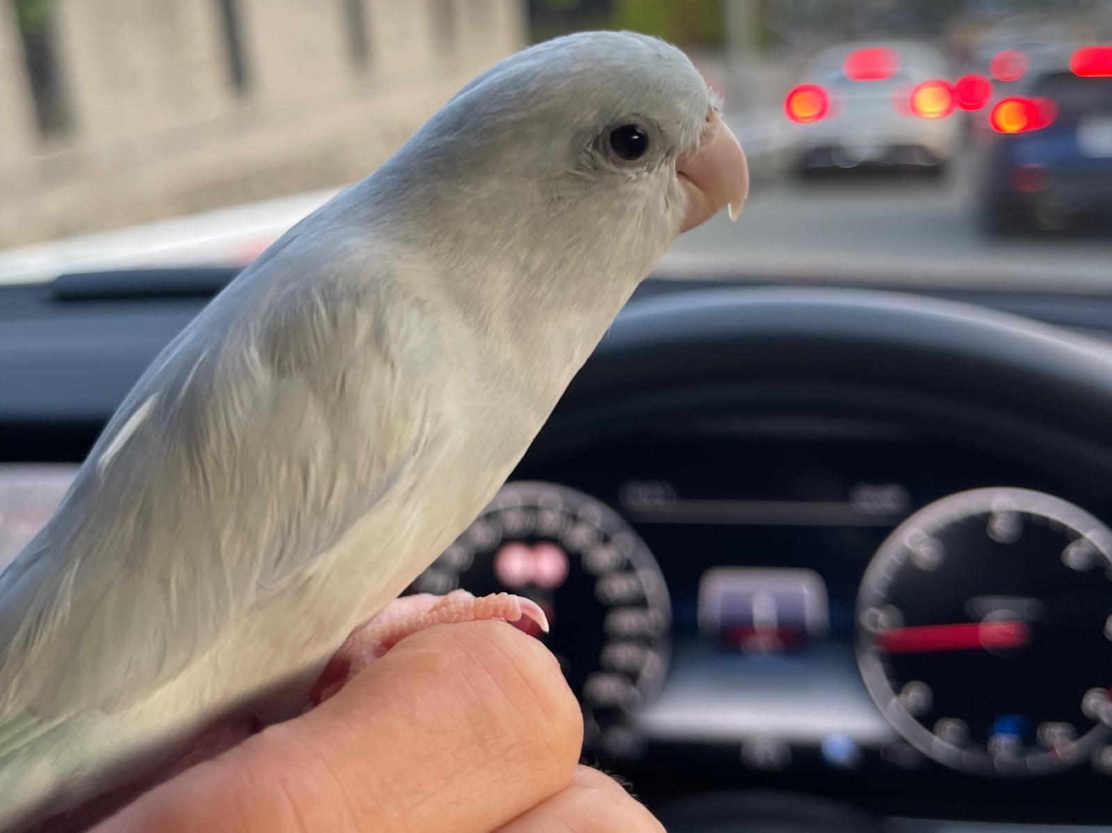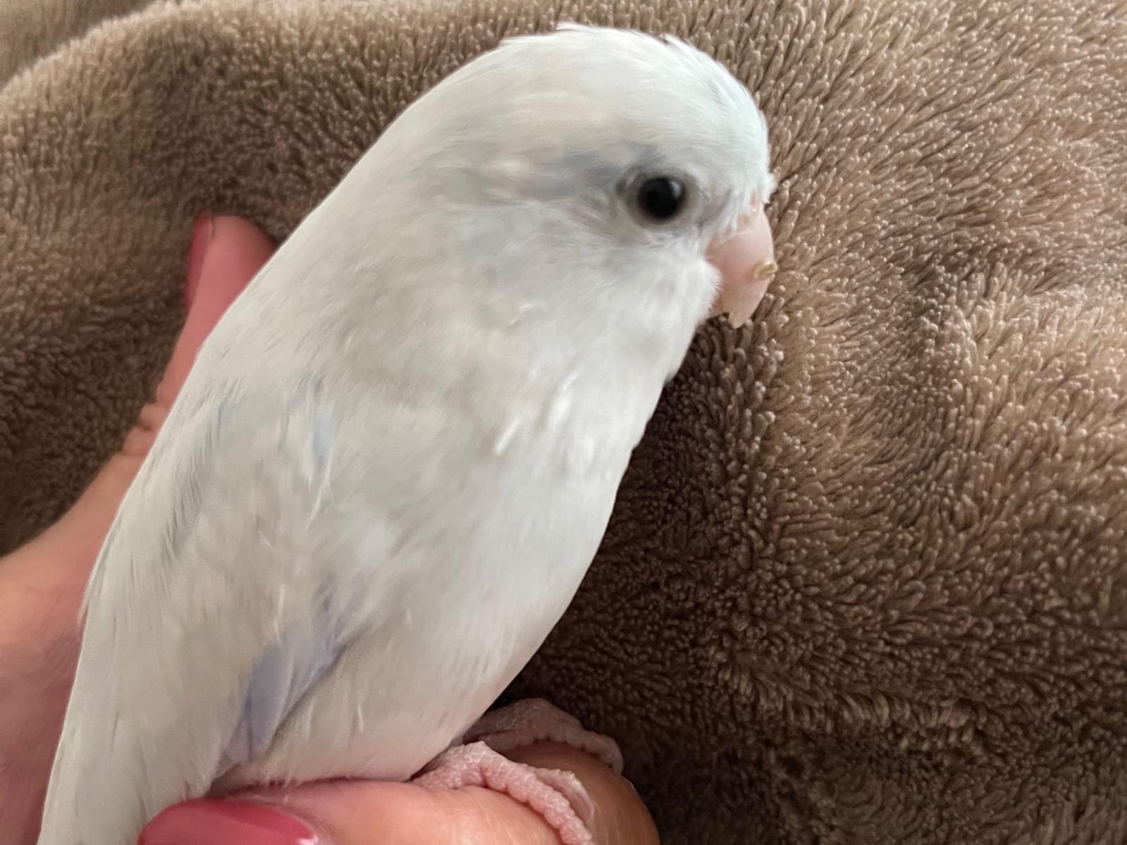 薄い水色のインコ 芦屋浜で迷子になりました。手のひらサイズ