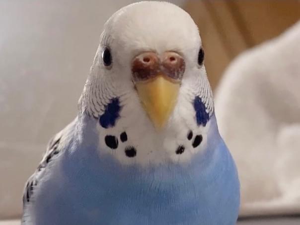 白い顔と空色の体のセキセイインコをさがしています