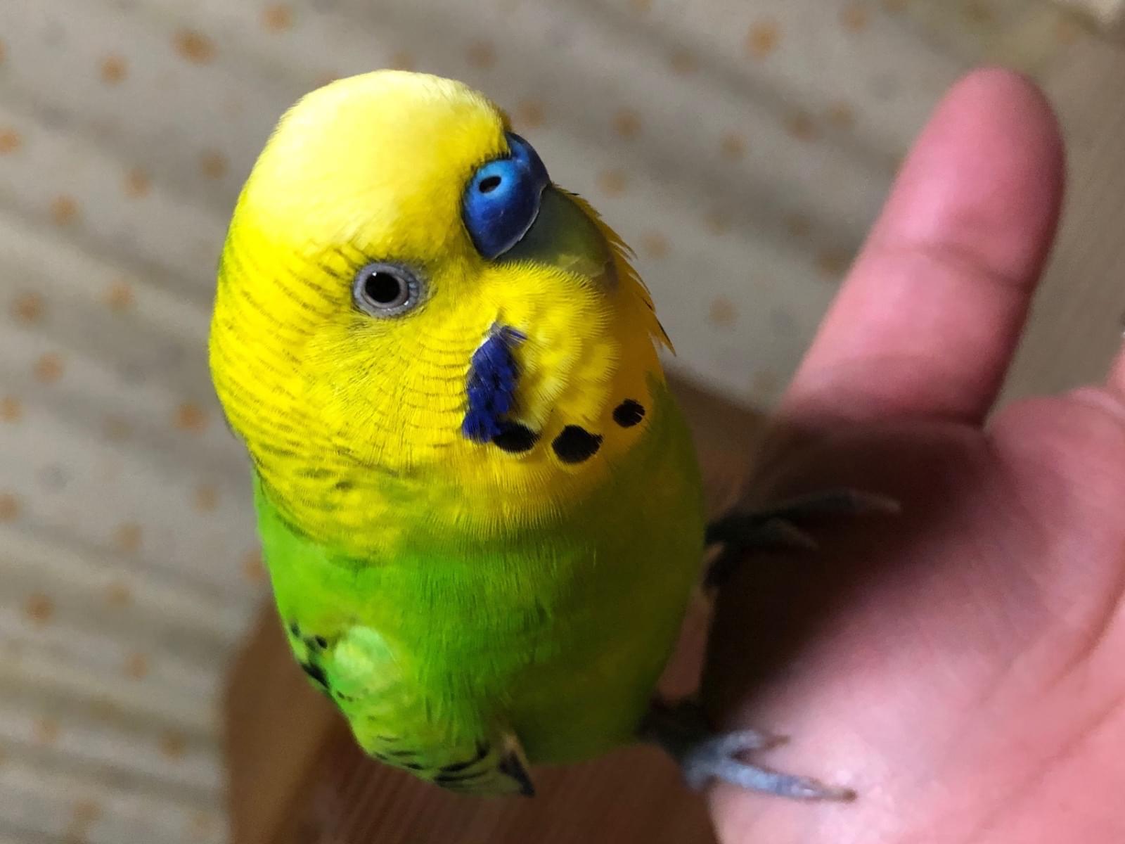 緑と黄色のセキセイインコです。