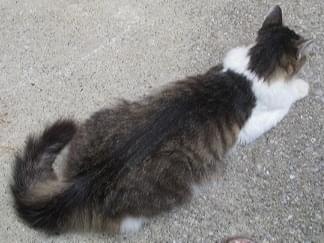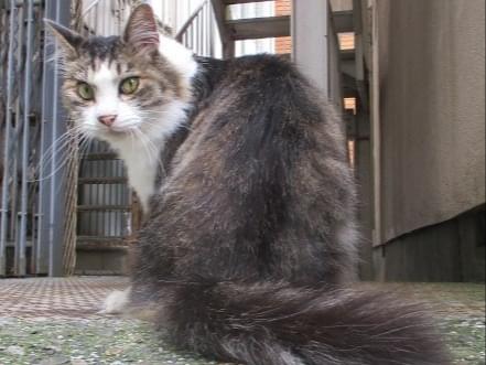 キジ白・長毛。首輪・マイクロチップ無し。大型(4~5kg位)。