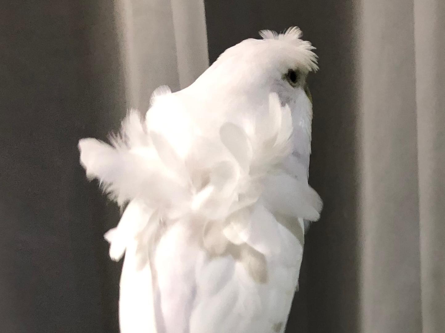真っ白な羽衣セキセイインコが、6月19日(月)正午頃、破れていた網戸の隙間からいなくなってしまいました。